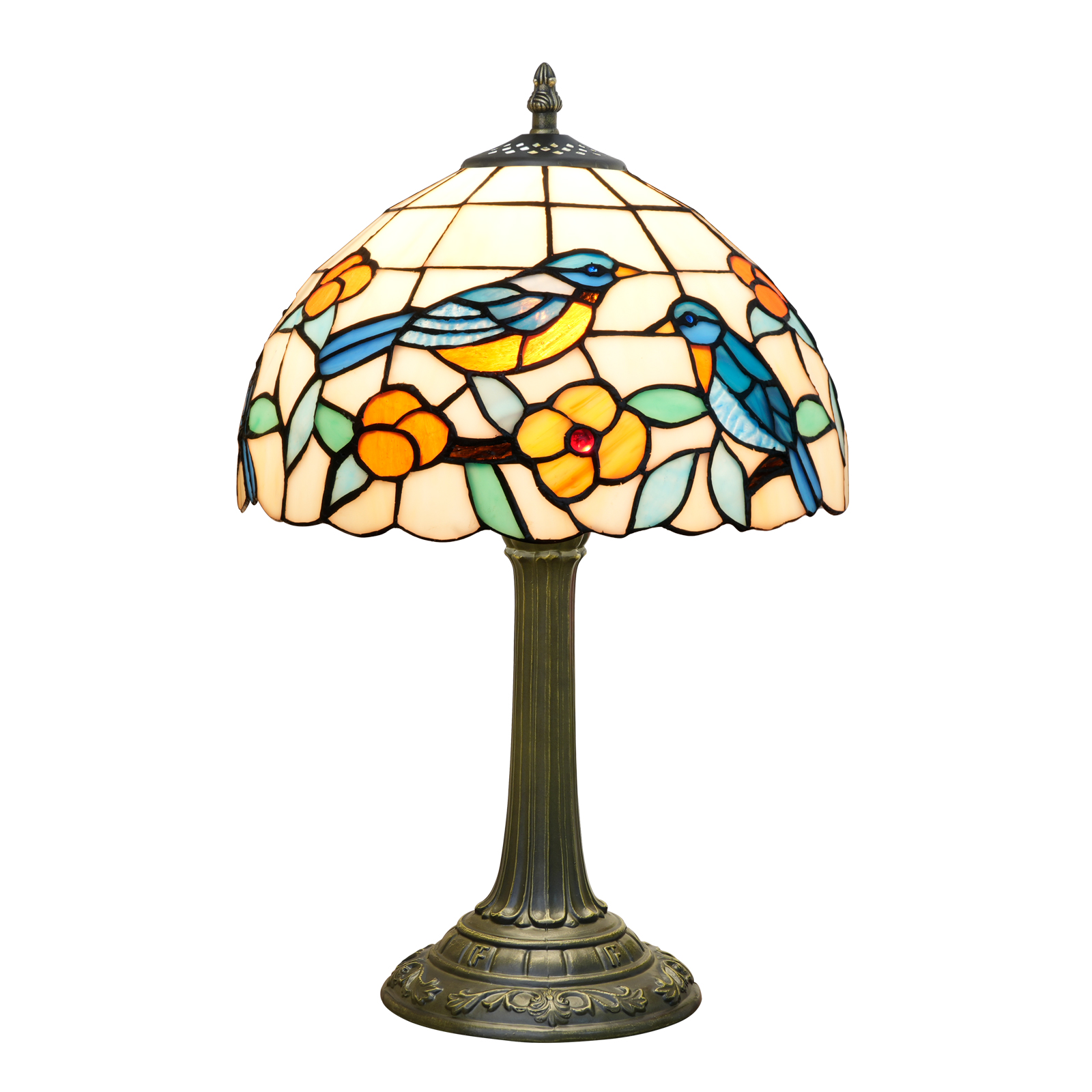 Blivuself Tiffany Style Stained Glass Table Lamp,12-Inch Robin Plum Blossom Bedside Lamp, Handcrafted, Suitable For Home Decoration Art In Bedrooms, Dormitories, Dining Rooms, Etc(Blue, Deep Red)OFT1322