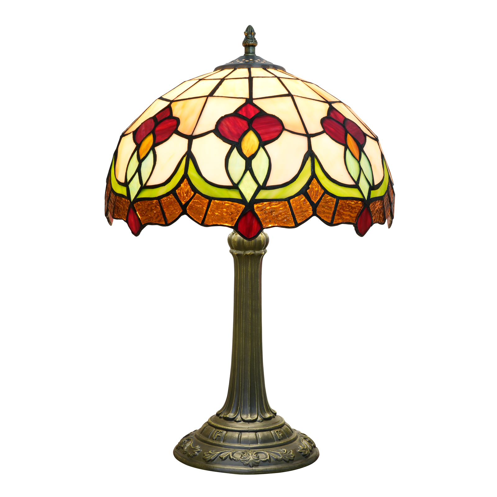 Blivuself Tiffany Stained Glass Table Lamp,12-Inch Retro Brownish Red Floral, Handcrafted Bedside Lamp, Suitable For Home Decoration Art In Bedrooms, Dormitories, Living Rooms, Etc(OFT1331)