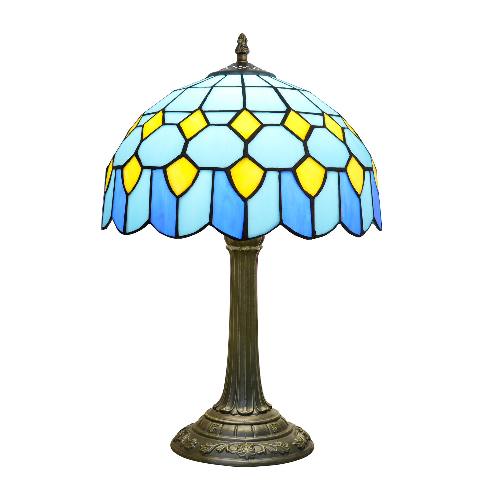 Blivuself Tiffany Stained Glass Table Lamp,12-Inch Simple Style Blue And Yellow Checkered Handcrafted Art, Suitable For Home Decoration Art In Bedrooms, Dormitories, Living Rooms, Etc(OFT1334)