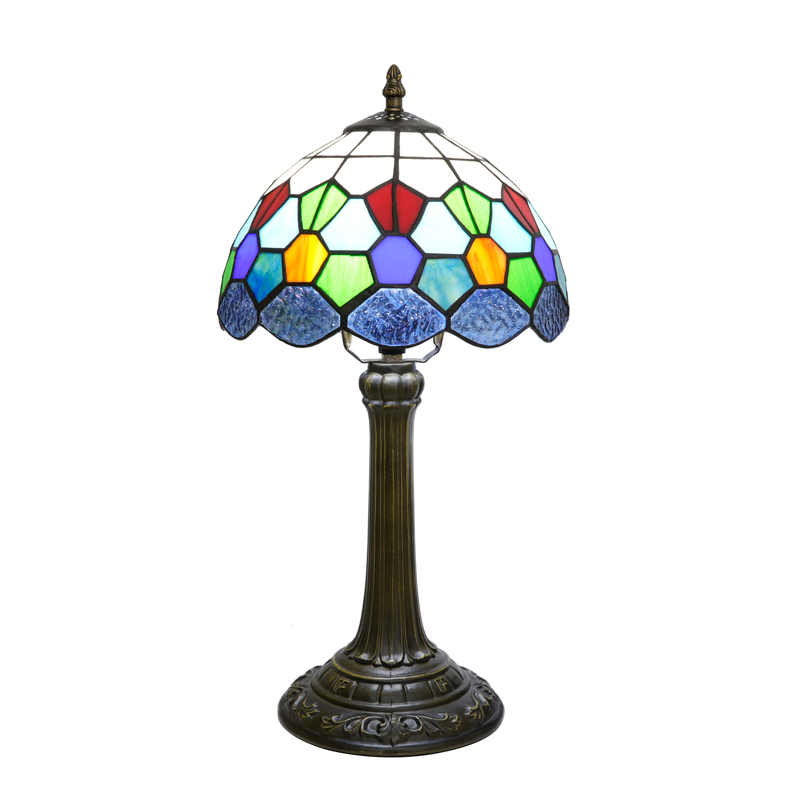 Blivuself Tiffany Stained Glass Table Lamp,10-Inch Geometric Aesthetic Colored Diamond Grid Handcrafted Art, Suitable For Home Decoration Art In Bedrooms, Dormitories, Dining Rooms, Etc(OFT1337)