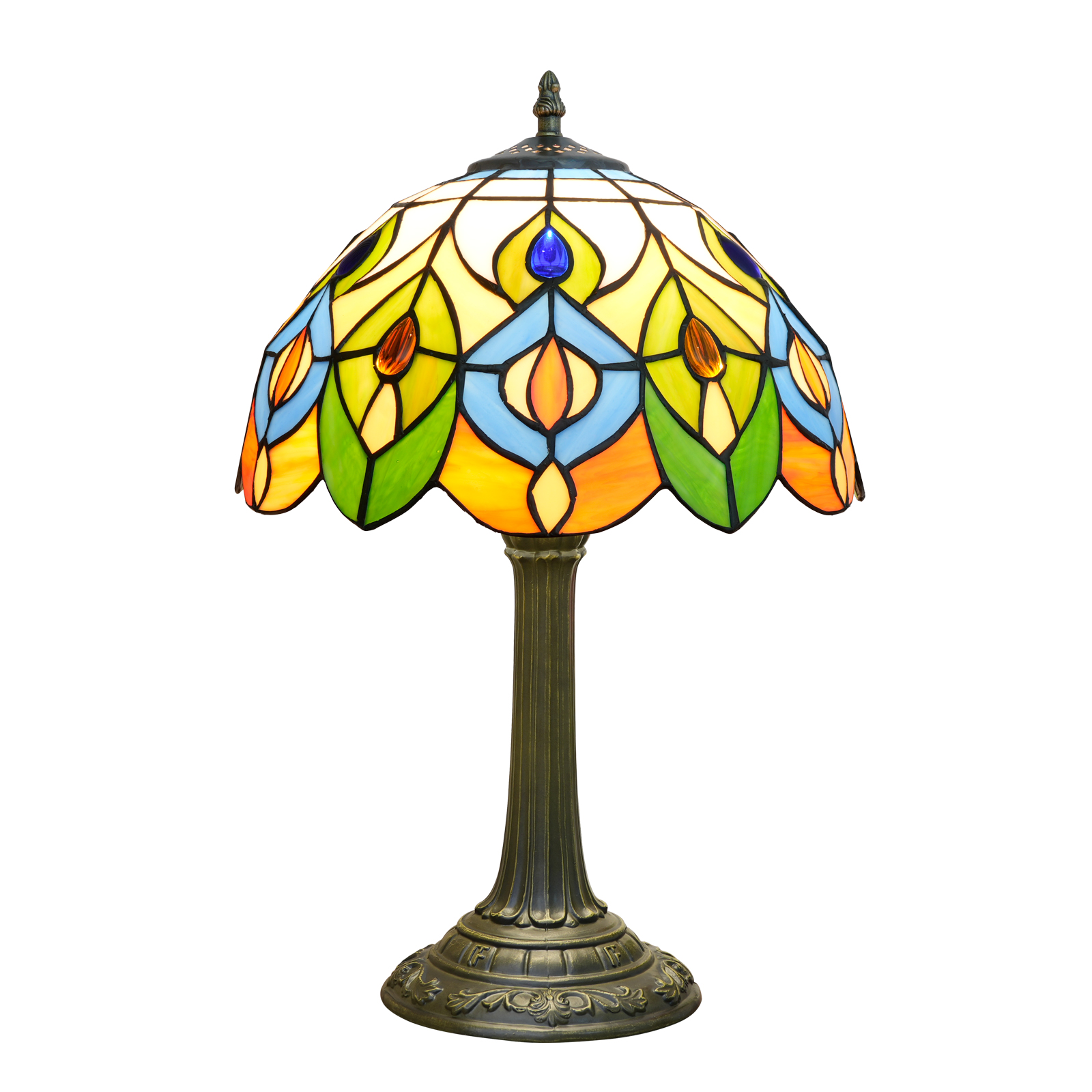 Blivuself Tiffany Stained Glass Table Lamp, 12-Inch Retro-Style Orange Peacock Tail, Suitable For Home Decoration Art In Bedrooms, Dormitories, Dining Rooms, Etc(OFT1339)