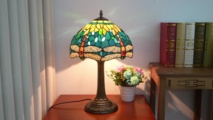 "Blivuself Stained Glass Dragonfly Lamp: The Design Of Dragonflies Represents Luck, Kindnessand Beauty.Craftsmen Choose Real Stained Glass , And Then Manually Cut Small Pieces According To Various Shapes, Wrapping Them With Copper Foil,Solder Production.Manual Production. The Tiffany Lampshade Is Handmade Throughout The Entire Process. Beautiful, High Quality Art Craft Nouveau Style Teal /Green Lampshade Very Attractive Lamp Give Off Lots Of Light And Looks Great! "