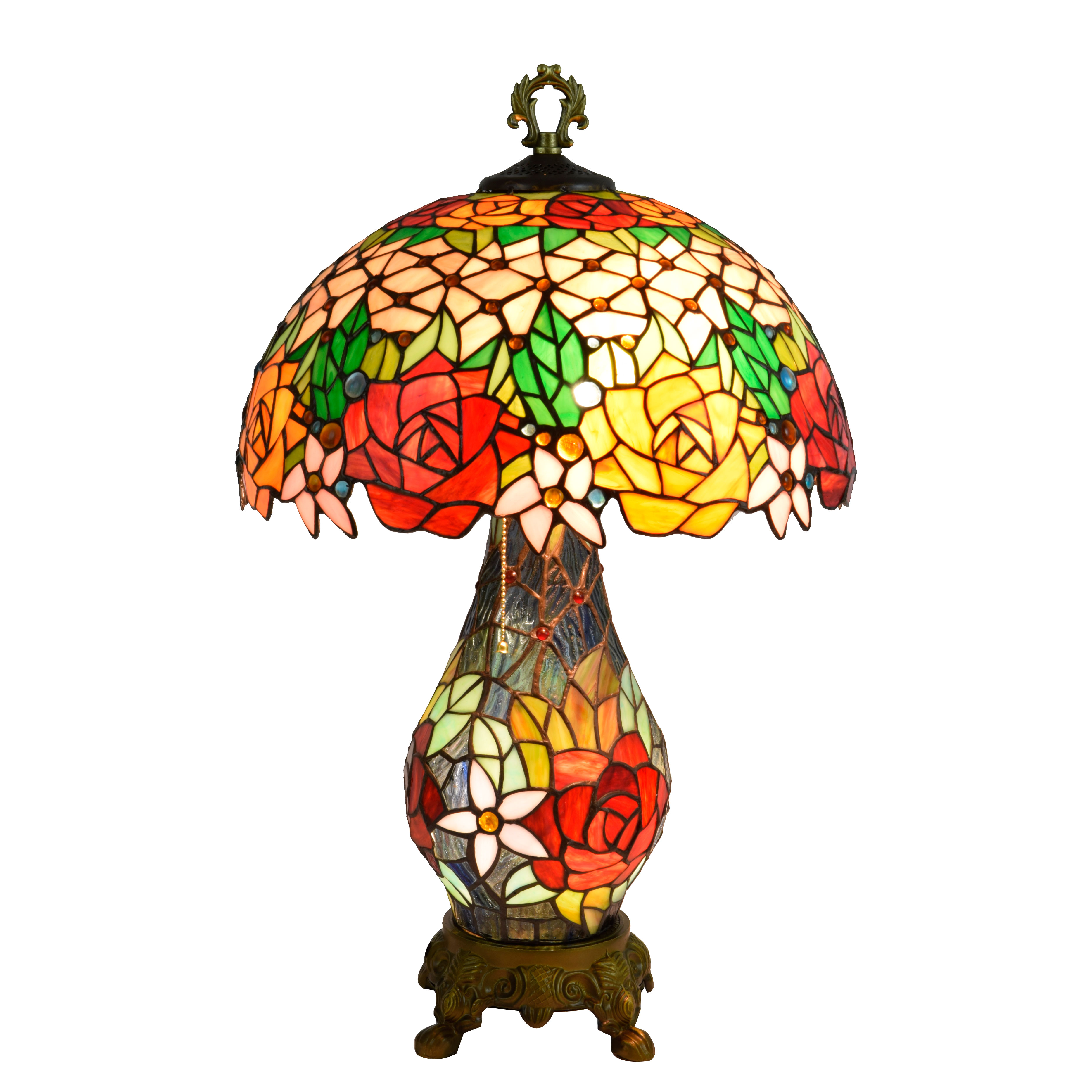 Blivuself Tiffany Stained Glass Red Beige Aluminum Alloy Base European And American Court Vintage Style Rose Garden Style Table Lamp 16 Inches Up Sub-Mother Table Lamp Office Desk Bedroom Corridor Cafe Restaurant Bar Decorative Furniture Decorated 16 Inches Gorgeous Rose Table Lamp OFT948
