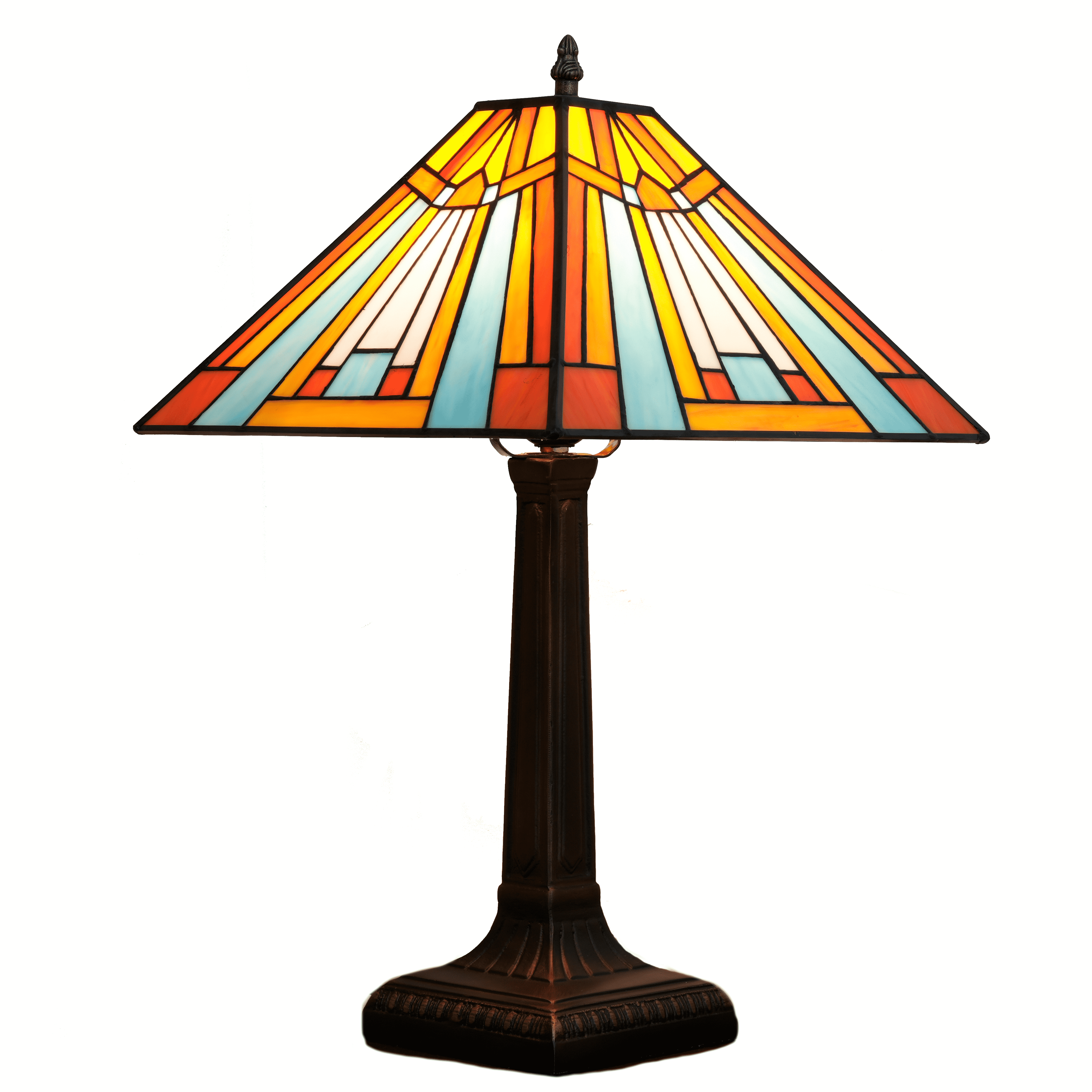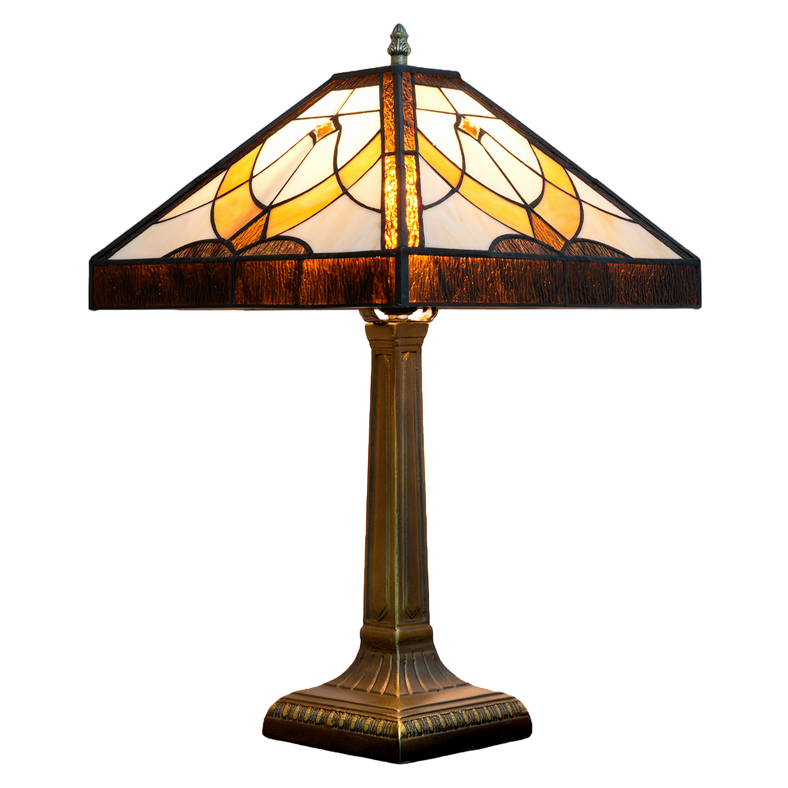 Blivuself Tiffany Table Lamp Traditional Country Style 16 Inch Brown Triangular Square Hand Stained Glass Lamp Shade, Light Luxury Style Interior Lighting Eye Protection Reading Lamp, Suitable For Bedroom, Dining Room, Office, Etc., 16 Inch Triangular Square Table Lamp OFT1263