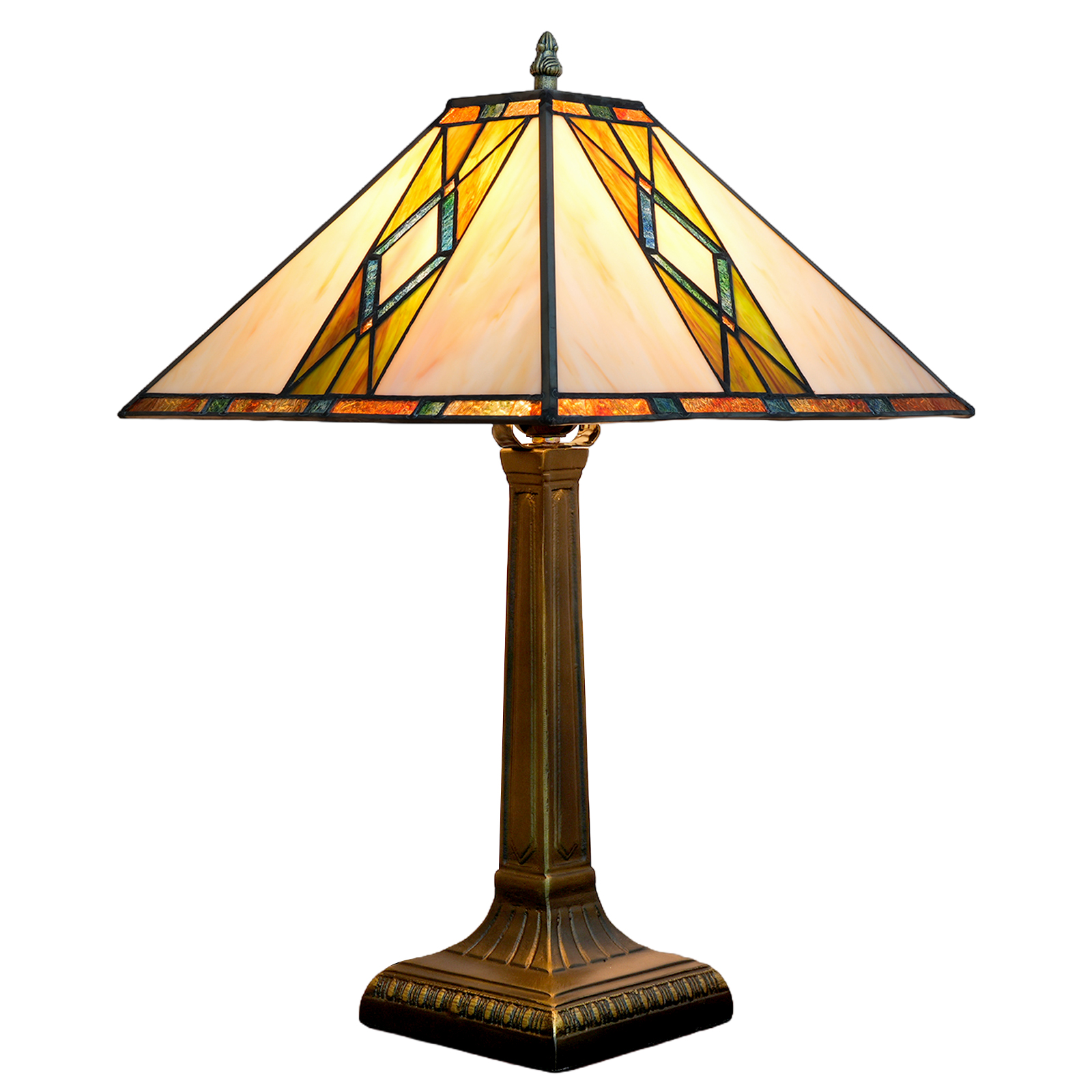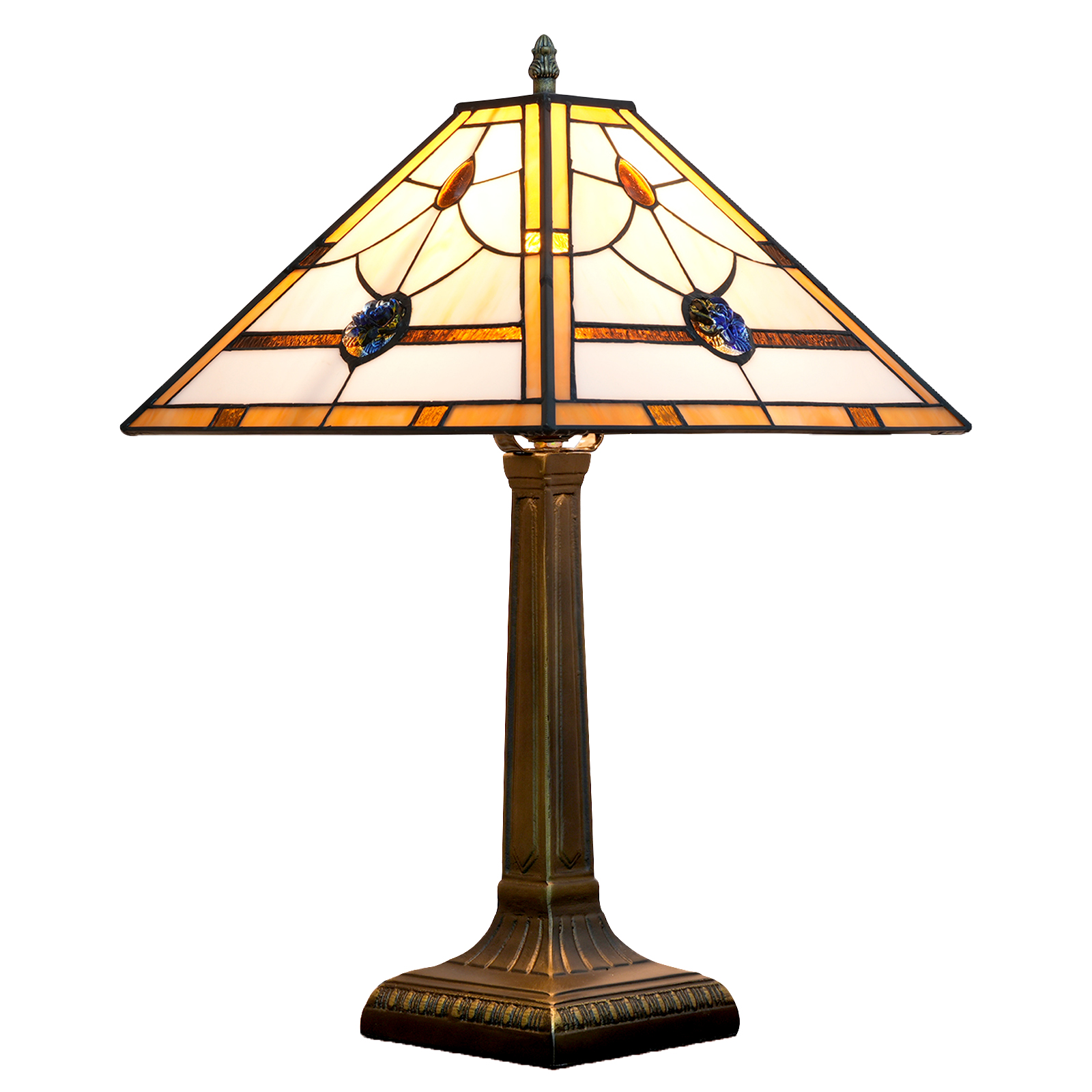 Blivuself Tiffany Desk Lamp Medieval Style 16 Inches Warm Yellow Square Hand Stained Glass Lamp Shade, European Vintage Style Indoor Lighting Eye Protection Reading Light, Suitable For Bedroom Dining Room Office, 16 Inches Warm Yellow Square Desk Lamp OFT1265