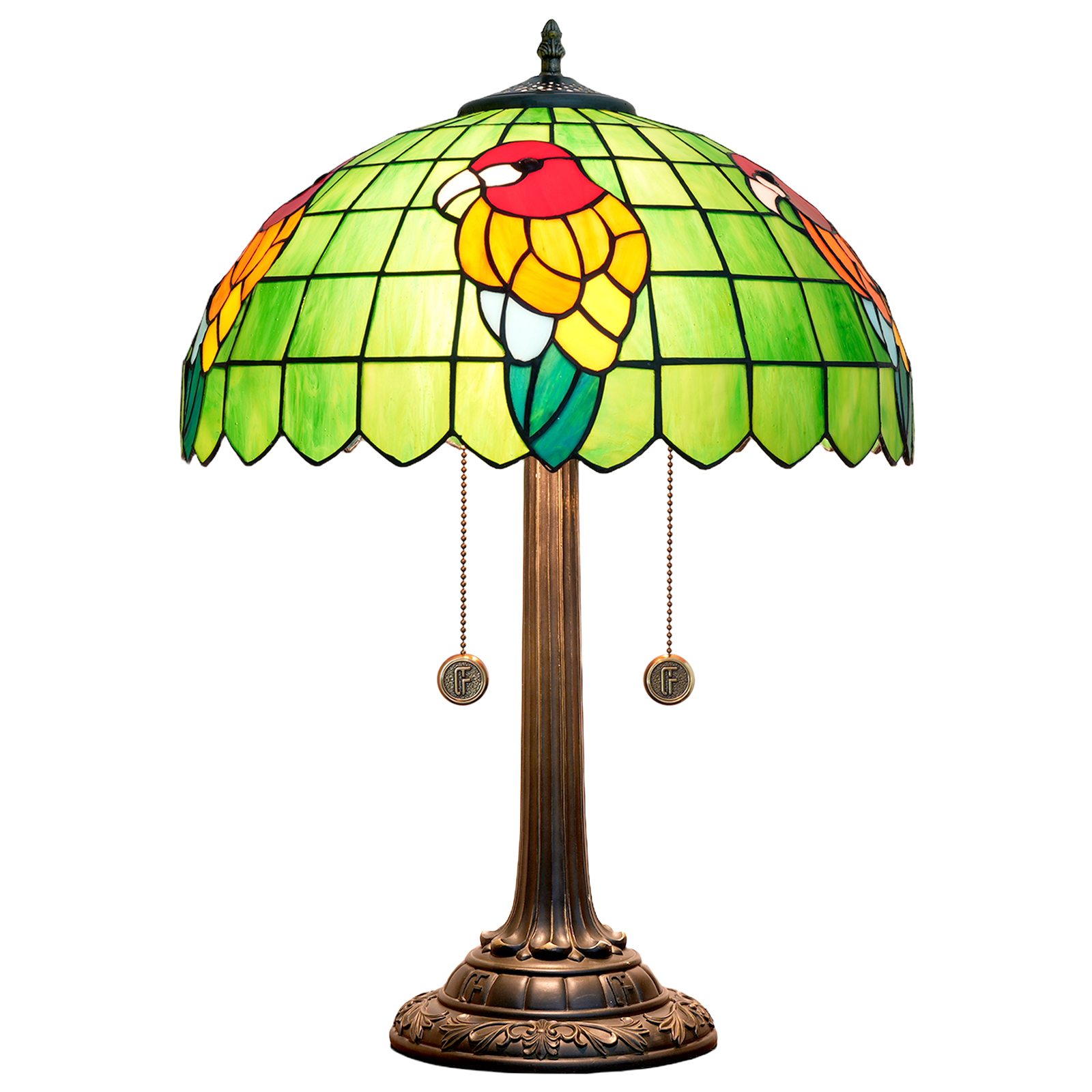 Blivuself Tiffany Table Lamp Victorian Style 16 Inch Green Background Red Parrot Handmade Stained Glass Lamp Shade, European Vintage Style Indoor Lighting Eye Protection Reading Light, Suitable For Bedroom Dining Room Office, 16 Inch Green Parrot -Of Chain Table Lamp OFT1267