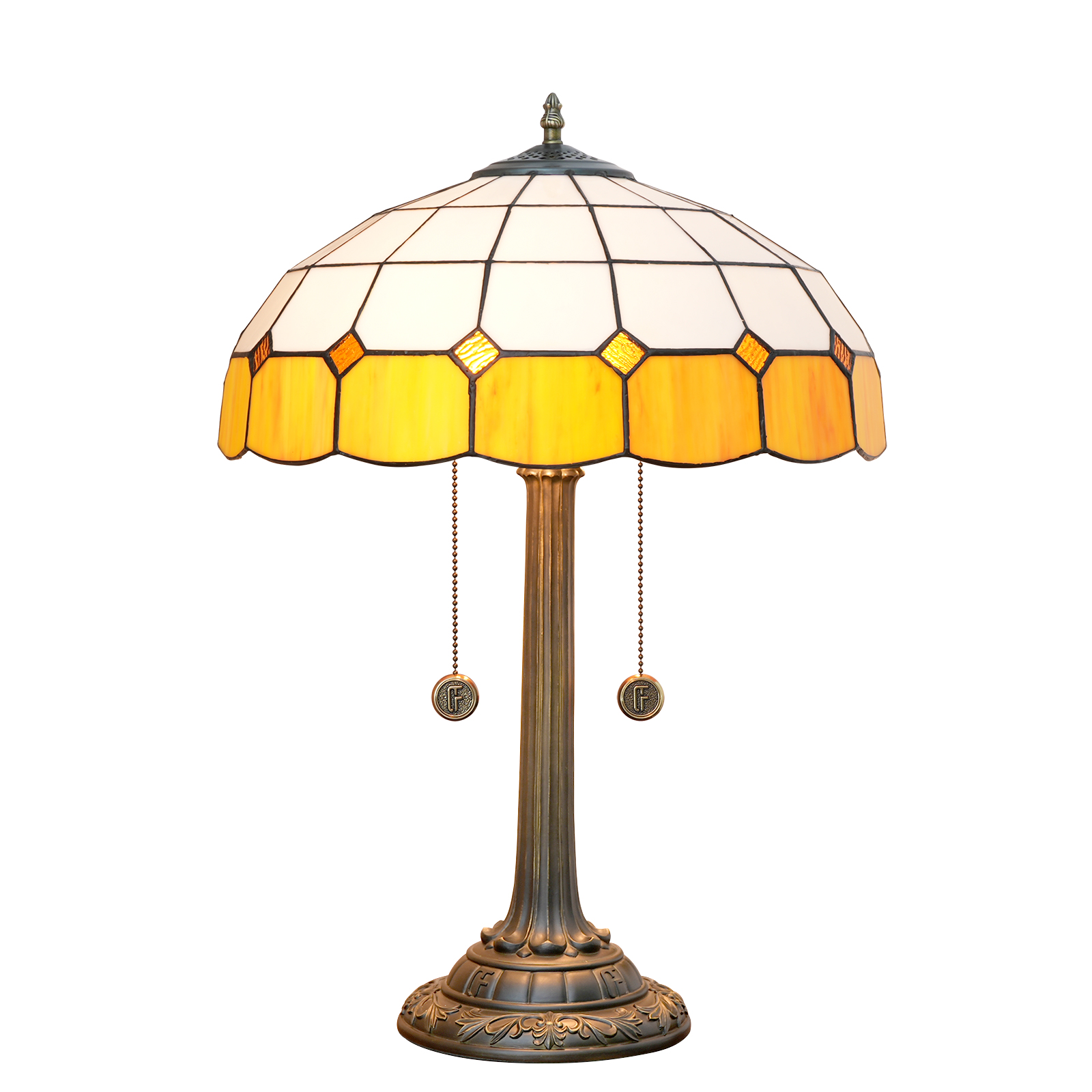 Blivuself Tiffany Stained Glass Yellow Plaid Country, European, Vintage Style Light 16x16x24 Inch Table Lamp Kitchen Office Desk Bedroom Hallway Eye Protection Reading Light Furniture Decoration Yellow And White Plaid OFT1222