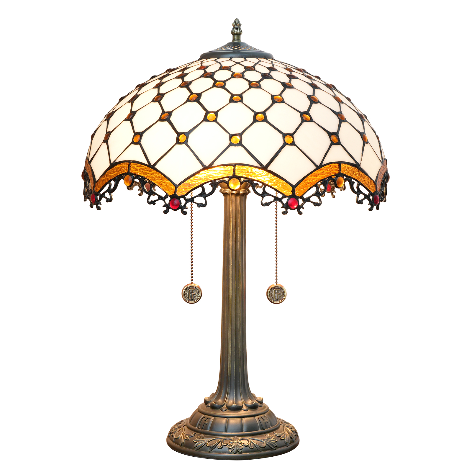 Blivuself Tiffany Stained Glass White Brown Beads Aluminum Alloy Base European And American Court Retro Style Table Lamp 16x16x24 Inch Table Lamp Kitchen Office Desk Bedroom Corridor Eye Protection Reading Light Cafe Restaurant Bar Decoration Furniture Decoration 16 Inch Brown Cross Bead Table Lamp OFT945