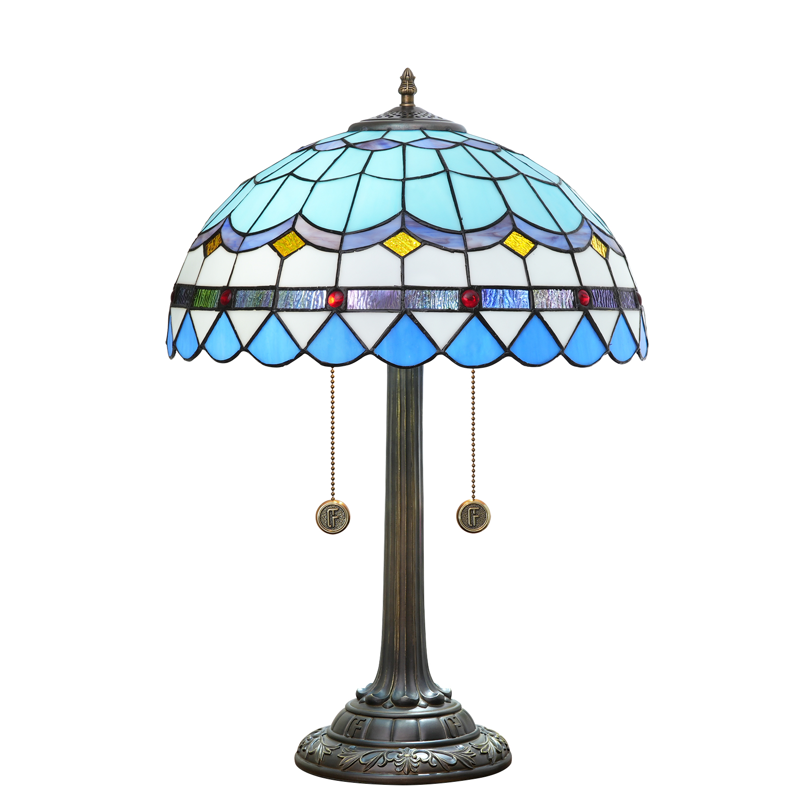 Blivuself Tiffany Stained Glass Blue Brown Aluminum Alloy Base European And American Court Vintage Style Table Lamp 16 Inches On The Sub-Mother Table Lamp Office Desk Bedroom Corridor Cafe Restaurant Bar Decorative Furniture Decorated 16 Inches Love Beads Dragon Tail Table Lamp OFT952