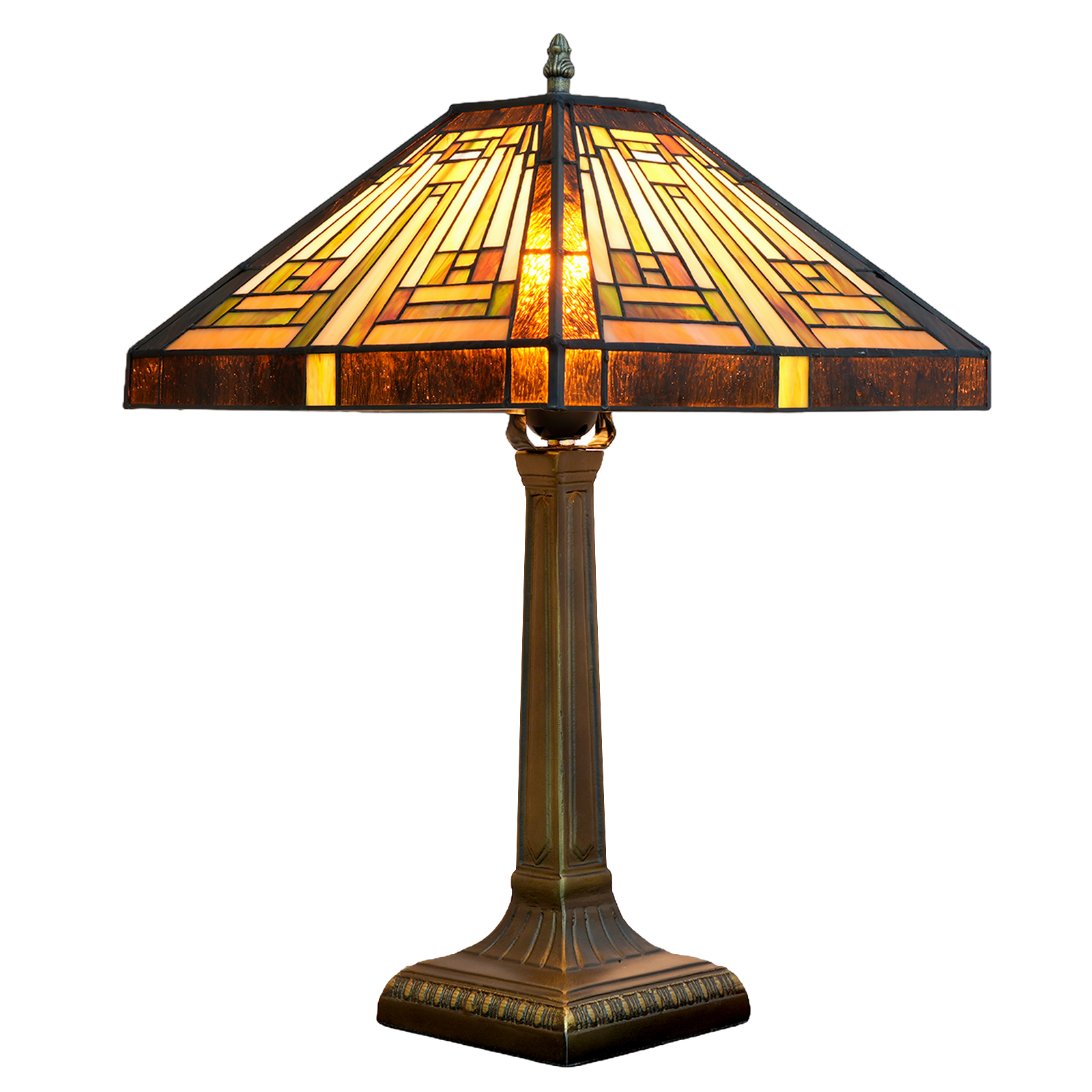 Blivuself Tiffany Stained Glass Brown Green Square Base European And American Court Vintage Lamp 16 Inch Office Desk Bedroom Corridor Cafe Restaurant Bar Decorative Furniture Decorated 16 Inch American Square Lamp - Bronze Square Base Lamp OFT1253