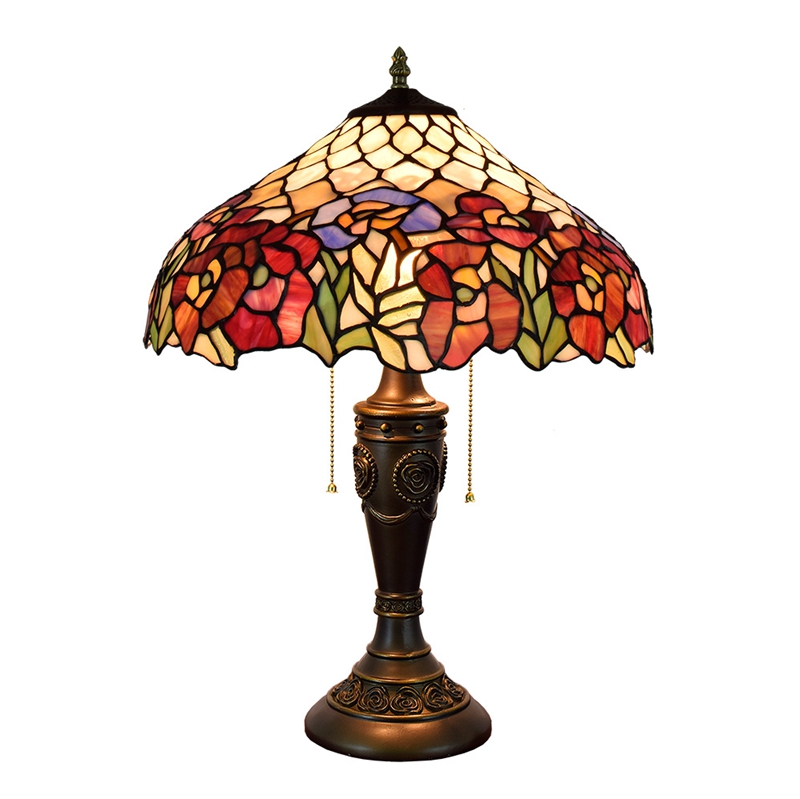Blivuself Tiffany Desk Lamp Traditional European Style 16 Inch Clematis Design Handmade Colored Glass Lamp Shade, Rose Logo Design Base, Interior Lighting Country Style Home Decoration, Suitable For Bedroom Living Room Study Dining Room, Etc., 16 Inch Clematis Rose Desk Lamp OFT889
