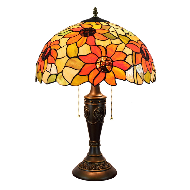 Blivuself Tiffanystained Glass Orange Sunflower Table Lamp Rose Base Pastoral, European, Vintage Style Table Lamp 16x16x24 Inch Table Lamp Kitchen Office Desk Bedroom Hallway Eye Protection Reading Light Furniture Decoration 16inch Lamp Sunflower OFT891