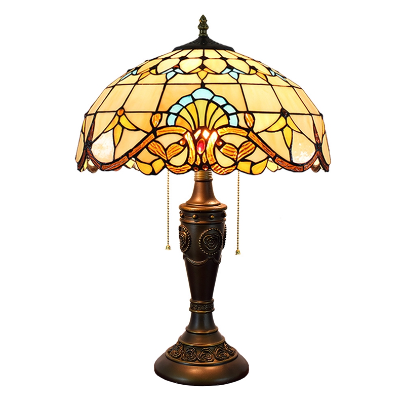 Blivuself TiffanyStained Glass Warm Yellow Baroque Rose Sign Base Rustic, European, Vintage Style Light 16x16x24 Inch Table Lamp Kitchen Office Desk Bedroom Corridor Eye Protection Reading Light Furniture Decoration 16 Inch Baroque Lamp OFT892