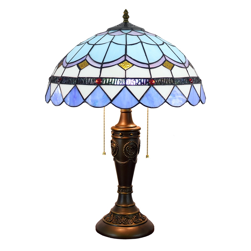 Blivuself Tiffany Stained Glass Blue Aluminum Alloy Base European And American Country Retro Style Table Lamp 16x16x24 Inch Table Lamp Kitchen Office Desk Bedroom Corridor Eye Protection Reading Light Cafe Restaurant Bar Decoration Furniture Decoration 16 Inch Blue Love Table Lamp OFT930