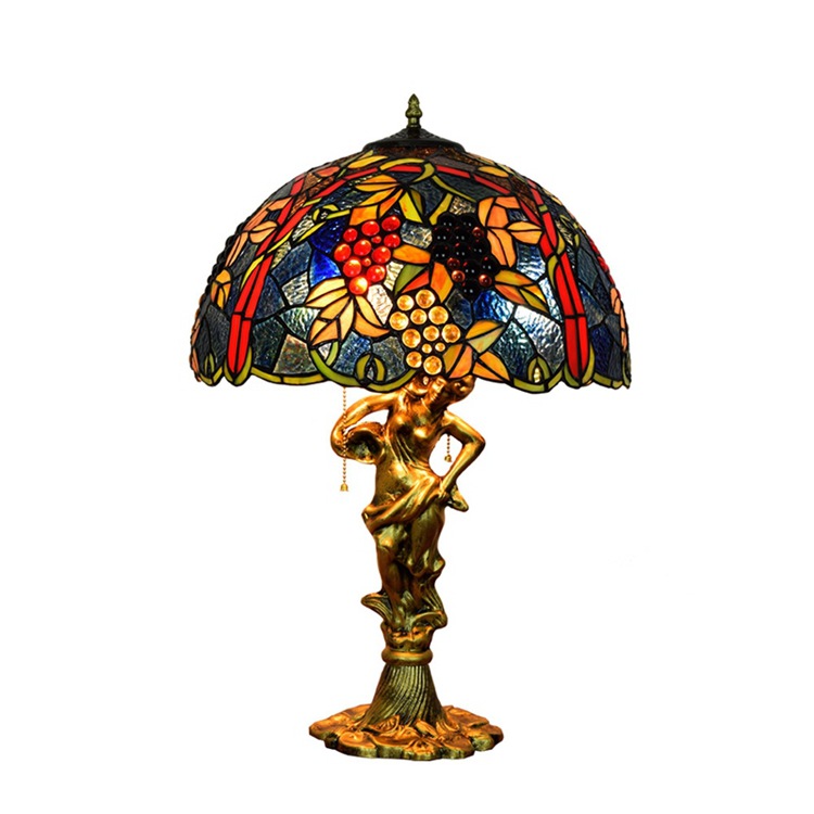 Blivuself Tiffany Stained Glass 17 Inch Grape Pastoral Style Aluminum Base European And American Country Retro Style Lamp 17x17x24 Inch Lamp Kitchen Office Desk Bedroom Corridor Eye Protection Reading Light Cafe Restaurant Bar Decoration Furniture Decoration 17 Inch Grape Fruit Lamp OFT934