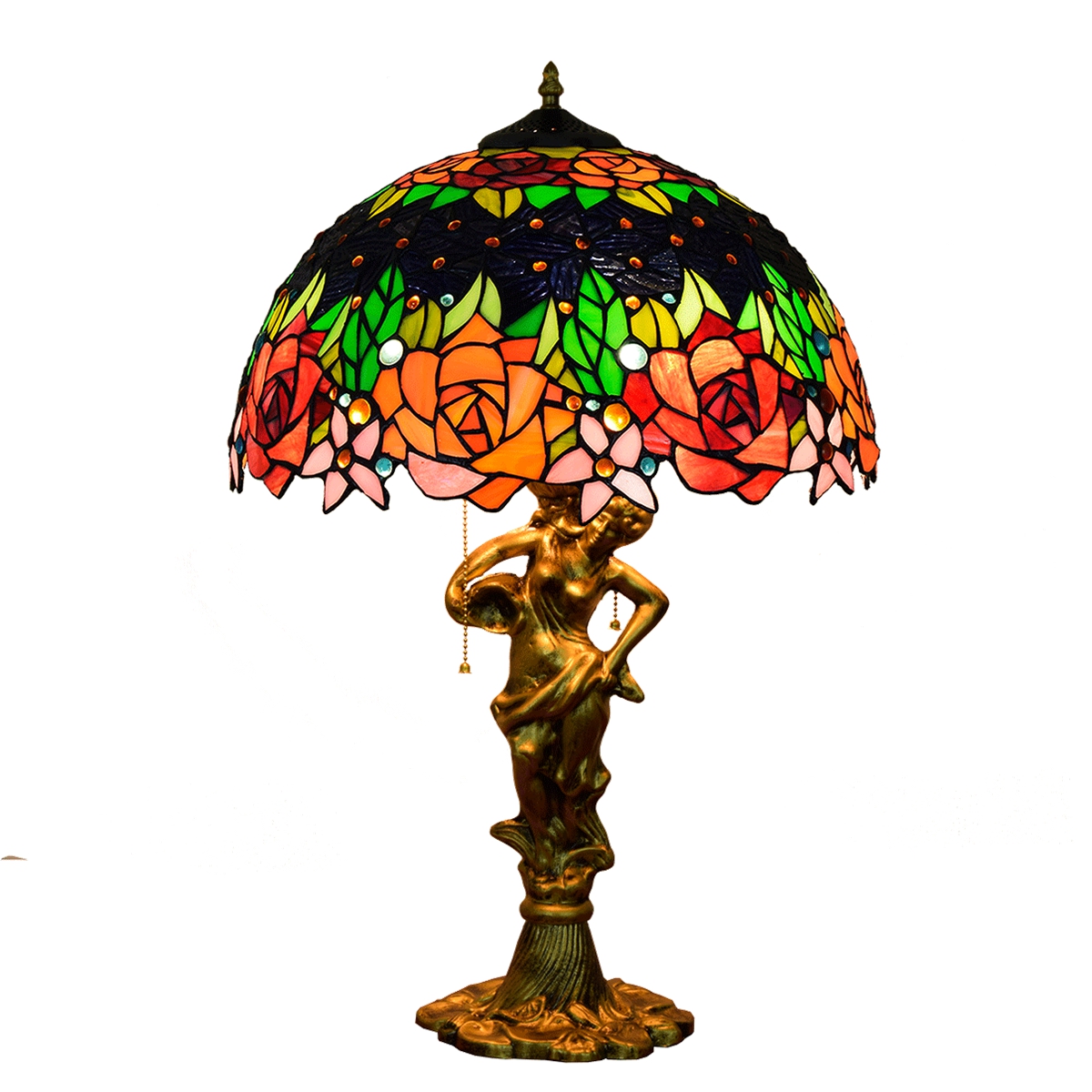 Blivuself Tiffany Stained Glass Red Rose Garden Style Aluminum Alloy Base European And American Country Retro Style Table Lamp 16x16x24 Inch Table Lamp Kitchen Office Desk Bedroom Corridor Eye Protection Reading Light Cafe Restaurant Bar Decorative Furniture Decorated 16 Inch Gorgeous Rose Table Lamp OFT939