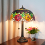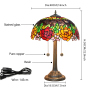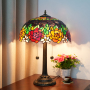 Blivuself Tiffany Stained Glass Dark Purple Rose Rustic, European, Retro Style Lamp 16x16x24 Inches Kitchen Office Desk Bedroom Corridor Eye Protection Reading Light Furniture Decoration Black Bottom Rose OFT1211