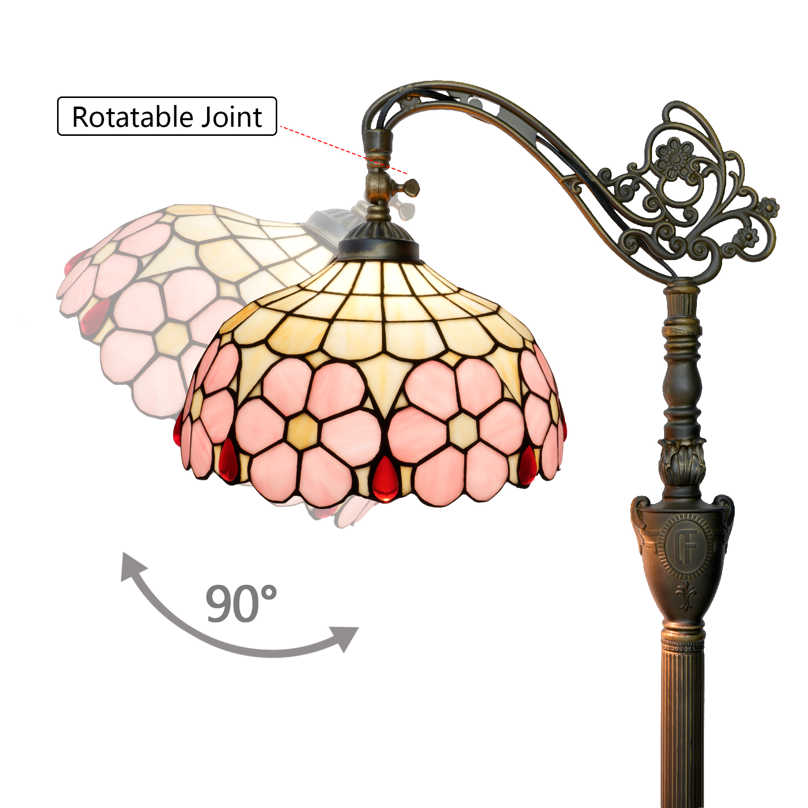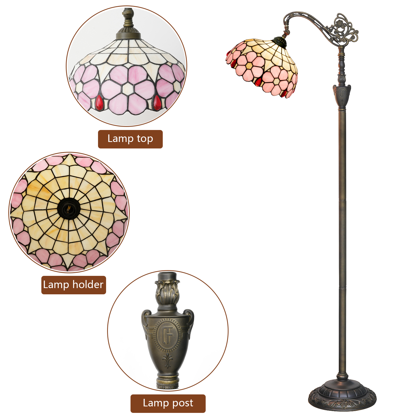 Handmade cherry blossom colored glass lampshade, beautiful light and shadow effect: Made with traditional Tiffany craftsmanship, the lampshade is composed of hand-cut pink floral colored glass. Each piece of glass is edged and welded with copper foil, featuring fine and rich colors, soft and romantic light transmission, and creating a warm and colorful artistic atmosphere when illuminated.