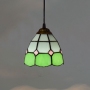 Blivuself Tiffany Style Stained Glass 6-Inch Green Lattice Design Chandelier European And American Retro Casual Style Suitable For Living Room, Dining Room, Bedroom, Bar And Other Indoor Home Decoration 6-Inch Green And White Lattice - Black Line Chandelier OFP1323