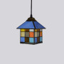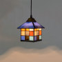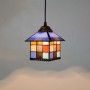 Blivuself Tiffany Style Stained Glass 8-Inch Blue Small House Design Chandelier European And American Retro Garden Style Suitable For Living Room, Dining Room, Bedroom, Bar And Other Indoor Home Decoration 8-Inch Small House - Black Line Chandelier OFP1022