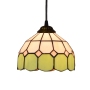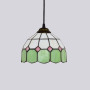 Blivuself Tiffany Style Stained Glass 8-Inch Green Lattice Design Chandelier European And American Retro Casual Style Suitable For Living Room, Dining Room, Bedroom, Bar And Other Indoor Home Decoration 8-Inch Green And White Lattice - Black Line Chandelier OFP1033
