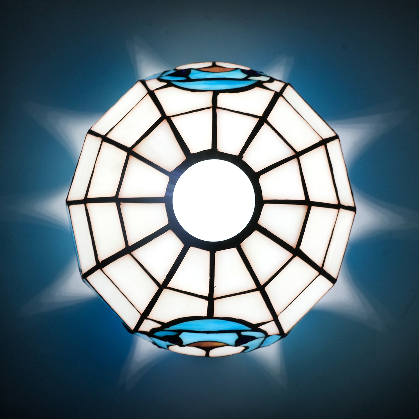 This 8-inch blue and white sea lion colored glass lampshade, adhering to Tiffany's retro handcrafting techniques, is a large-mouth replaceable lampshade suitable for chandeliers and wall lamps. Whether it's creating a warm atmosphere in the bedroom, adding fun to the dormitory, or elevating the style of the living room, all can bring a unique charm to classical art home decoration.