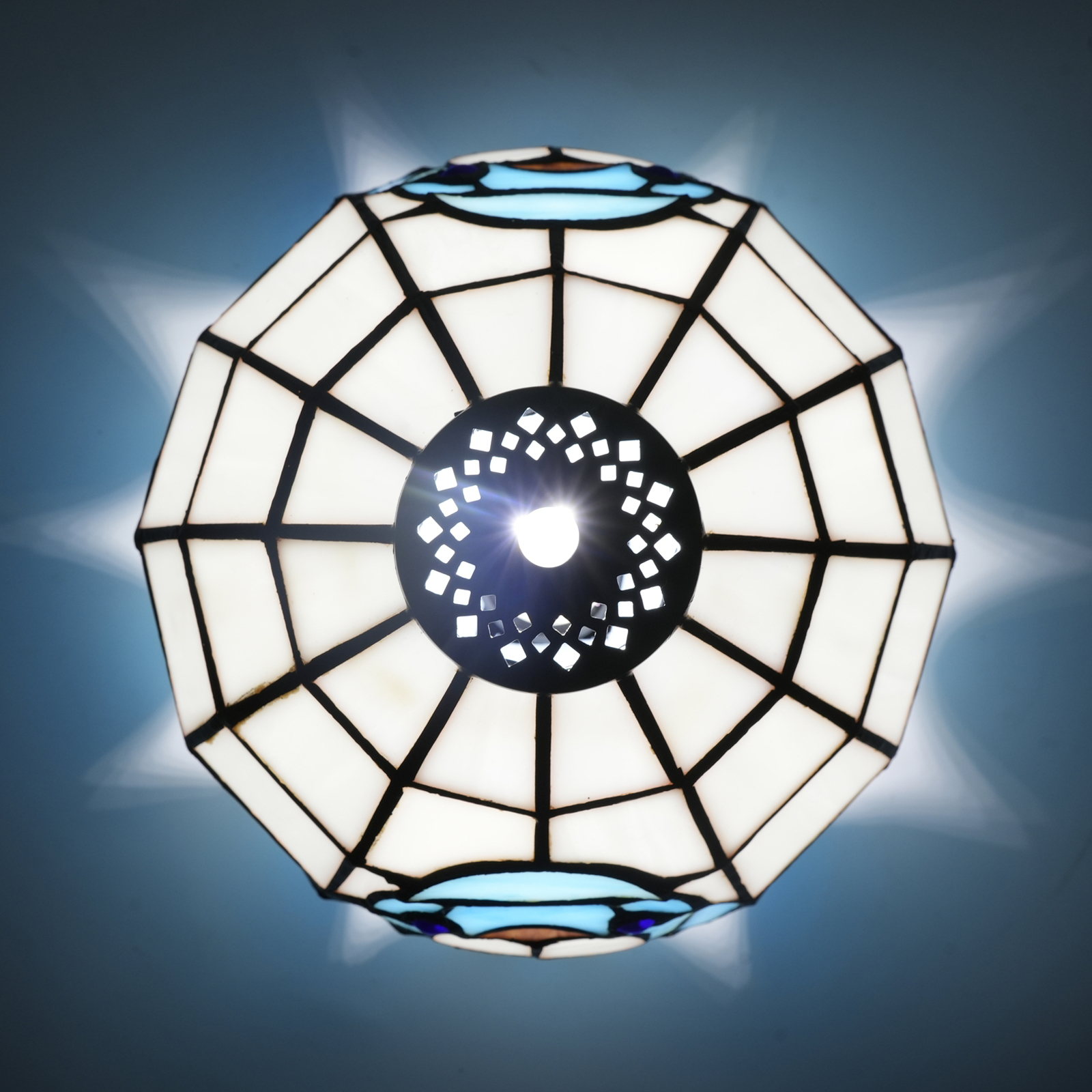 This is an 8-inch blue and white sea lion colored glass lampshade in Tiffany style, handcrafted in a retro style, with a small opening design. It is compatible with chandeliers and wall lamps and can be integrated into Spaces such as bedrooms, dormitories, and living rooms. With its cute sea lion design and classical artistic texture, it can refresh the atmosphere of home decoration.