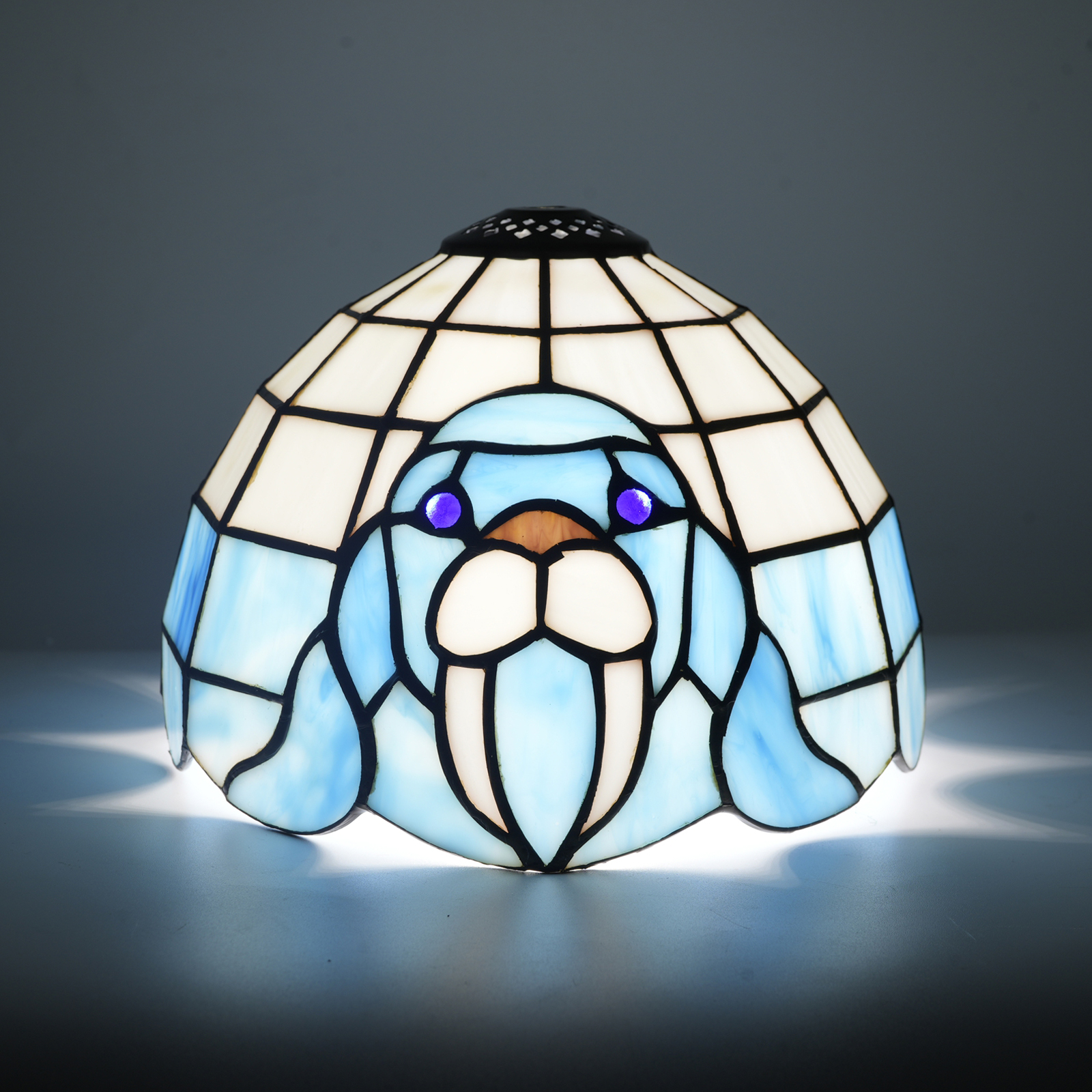 Cute and Fun sea Lion Design: Inspired by sea lions, blue and white colored glass is pieced together to create the cute and clumsy appearance of sea lions, with purple glass as the eyes, making it vivid and lively. Enhanced with traditional Tiffany craftsmanship, the glass is finely cut, spliced and welded, with natural color transitions. It is both retro and artistically appealing.