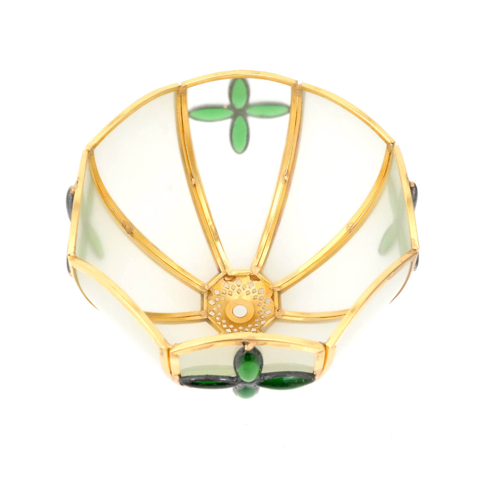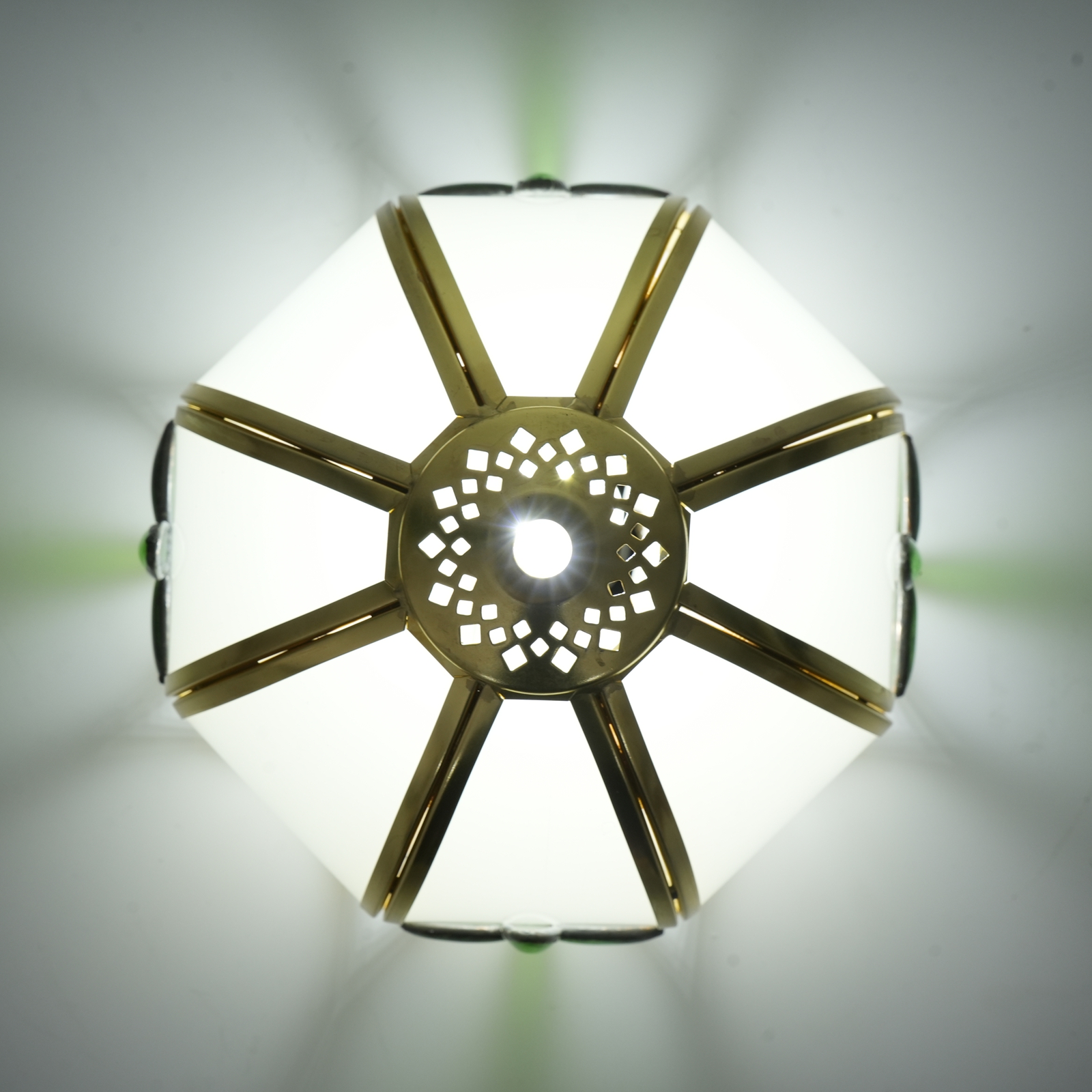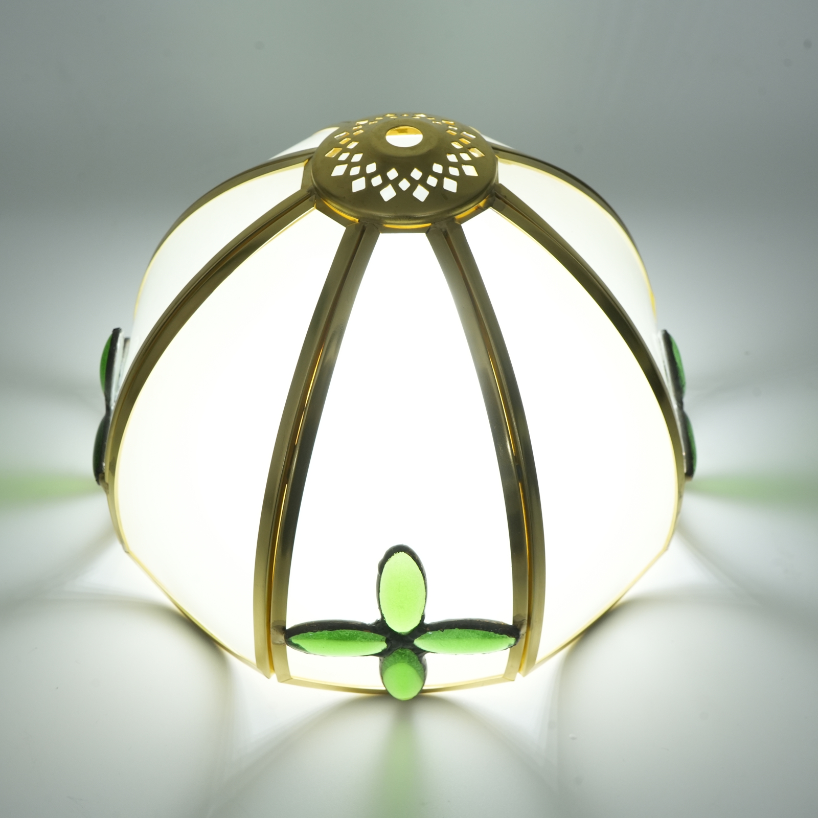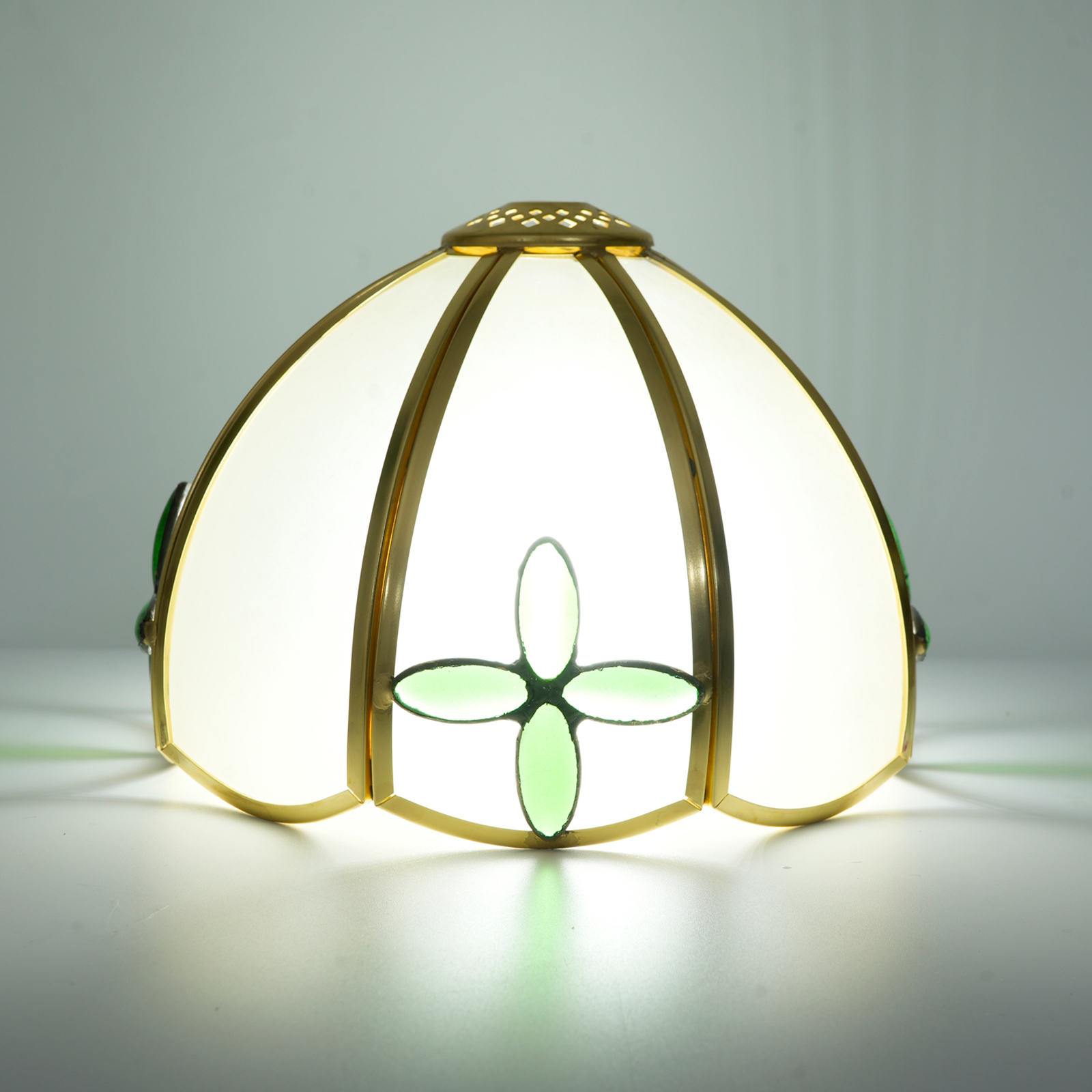 Inheriting the century-old craftsmanship essence of Tiffany, every piece of frosted glass is carefully selected and hand-cut by artisans. The warm and mellow frosted texture is like a gossamer veil in the morning mist, naturally carrying a hazy poetic charm. The golden frame Outlines a regular contour, piecing the glass together into a unique shape. The green cross decoration adds the finishing touch. From the fine touch of glass polishing to the meticulous craftsmanship of metal welding, the entire process is hand-polished, making the lampshade a one-of-a-kind artistic masterpiece, perfectly blending retro elegance with modern texture.