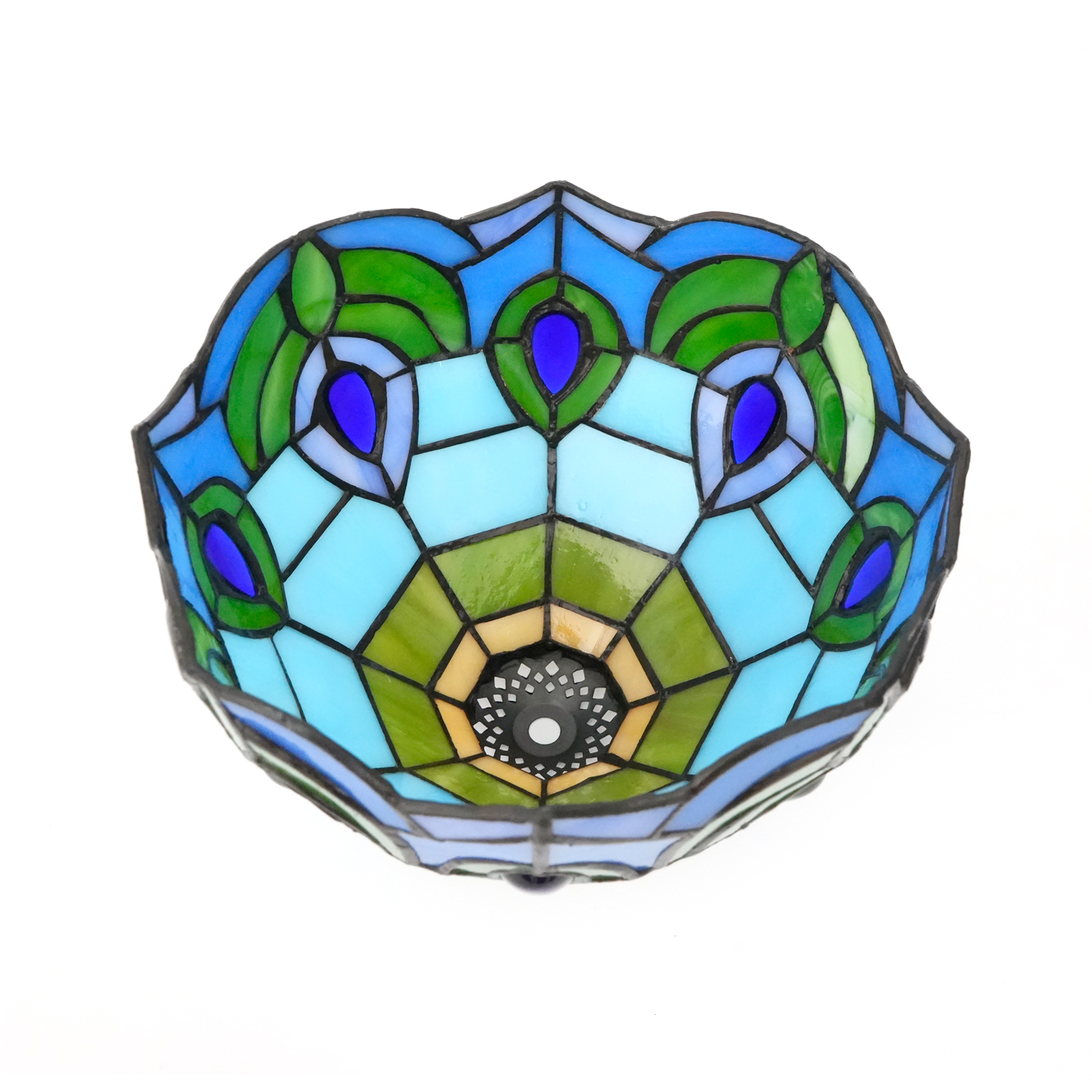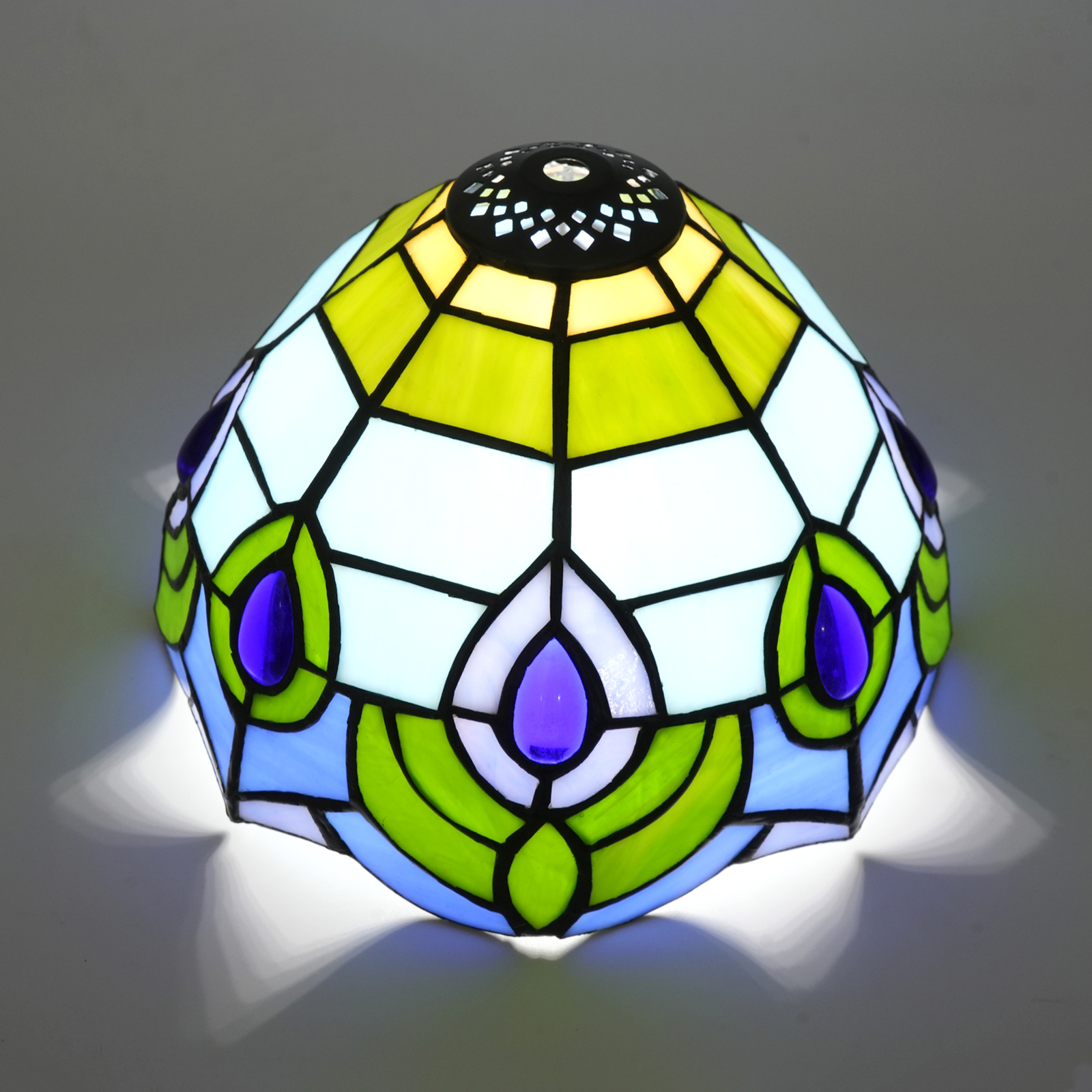 When retro style meets exquisite craftsmanship, this 8-inch Tiffany stained glass lampshade, inspired by the blue pearl peacock tail, becomes the finishing touch of a Victorian retro home.