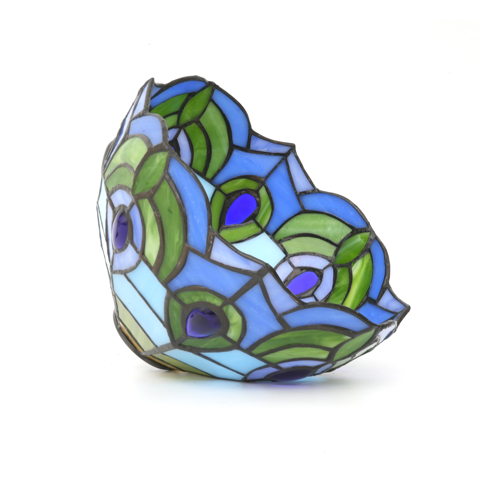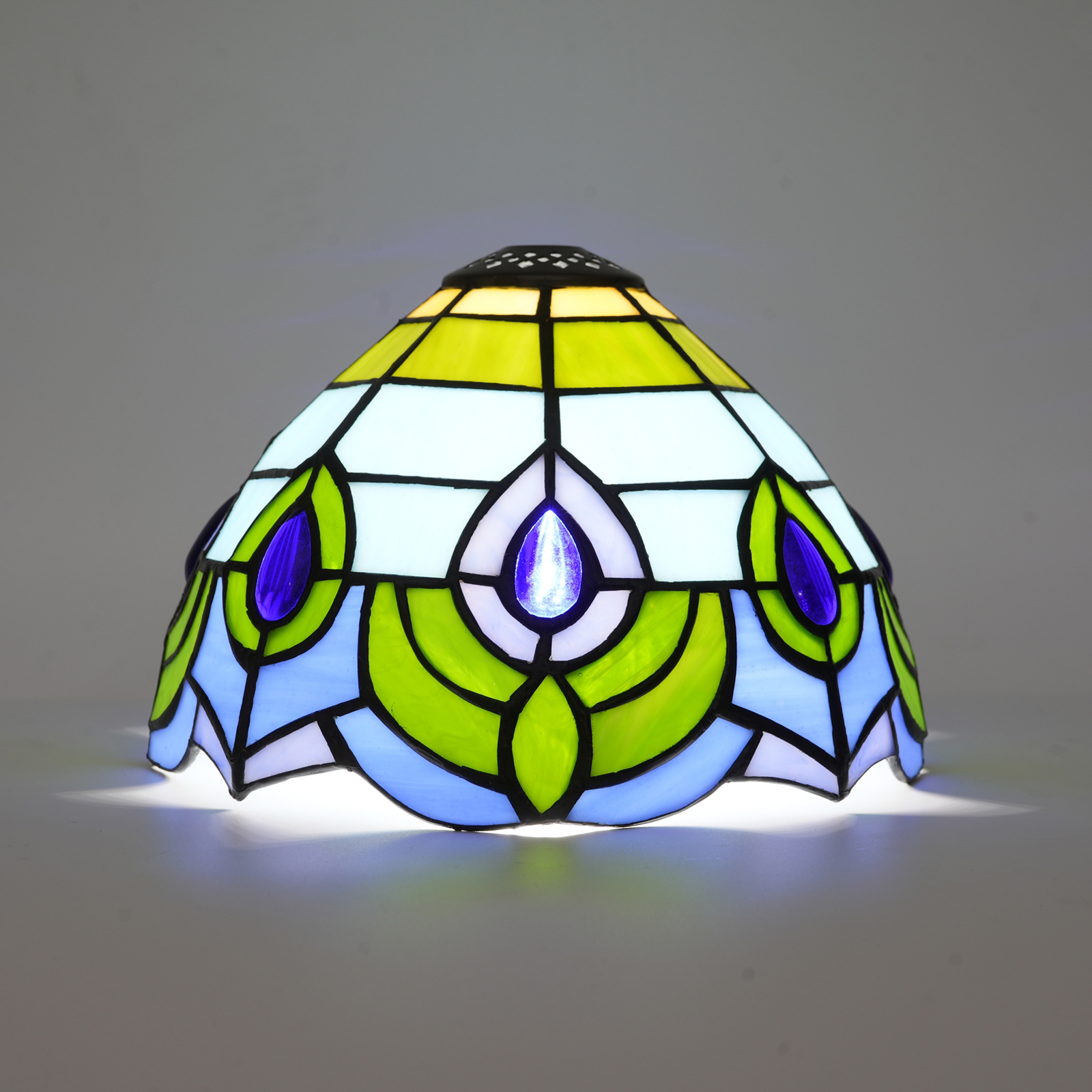 Inheriting the classic craftsmanship of Tiffany, the artisans create the blue pearl peacock tail lamp cover with meticulous techniques. Cut the colored glass to precisely present the blue, purple, green and other colors of the peacock's tail feathers. Each piece of glass is wrapped in copper foil and welded to replicate the dynamic texture of the tail feathers and the brilliance of the blue beads. The patterns are endowed with warmth by hand, and the small holes are ingeniously distributed to create a retro and romantic atmosphere for light and shadow, fully demonstrating the luxury and elegance of the Victorian era.
