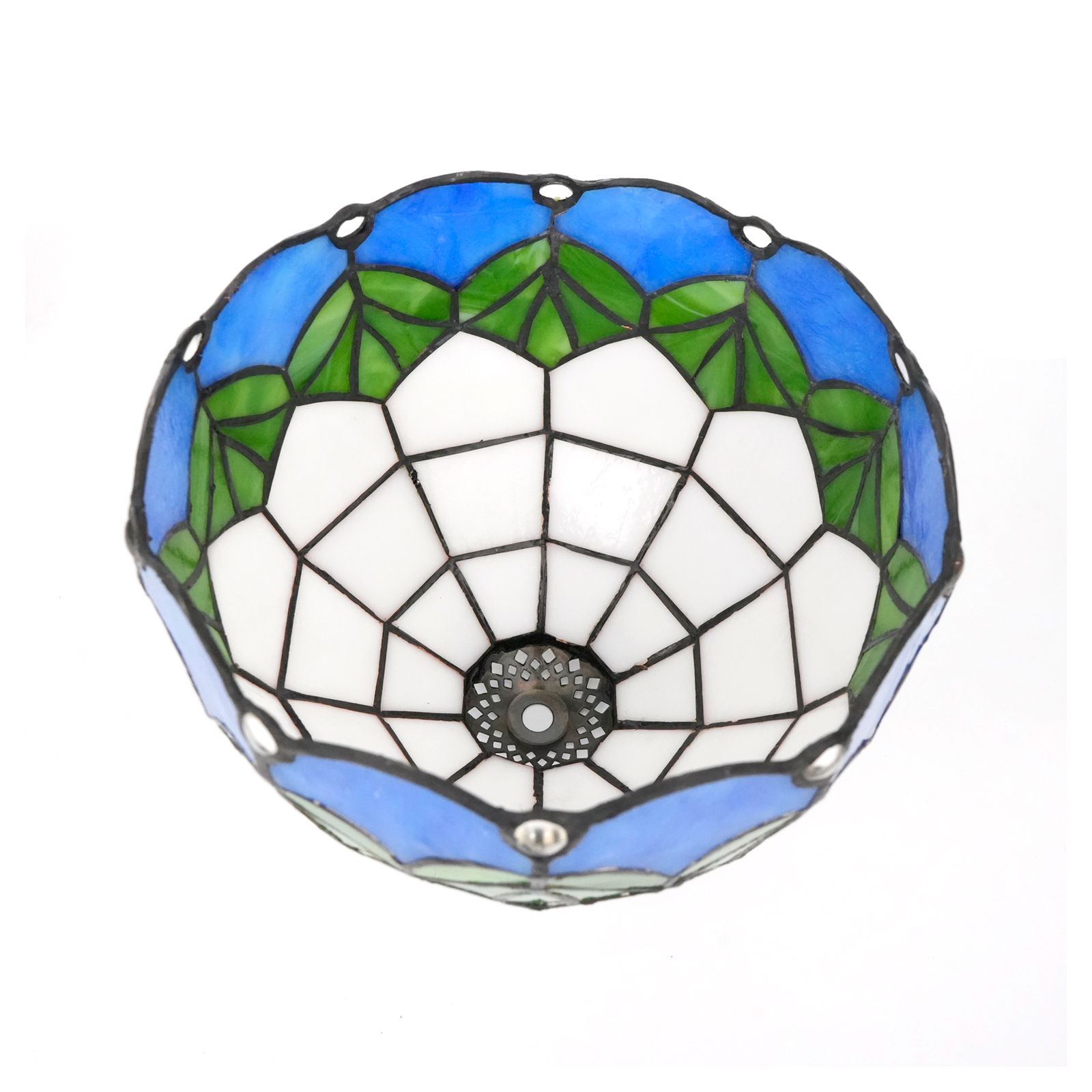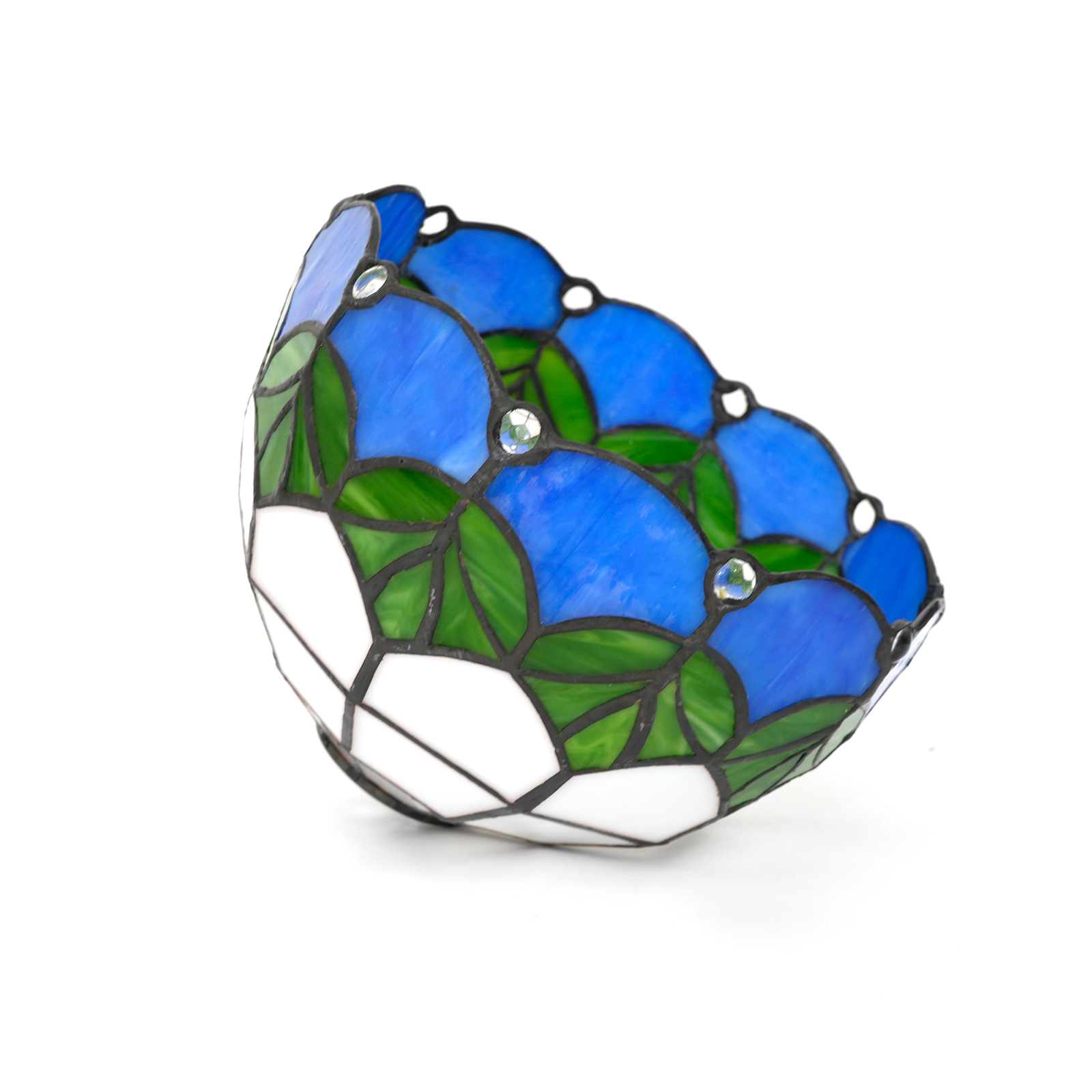 Inheriting the century-old craftsmanship of Tiffany, every small lotus leaf is meticulously carved by artisans. Cut the colored glass, grind out the blade outline, then wrap the edge with copper foil and weld it into shape. The interwoven shades of green are a vivid extension of the veins of the lotus leaves. The pure and transparent white and blue are like the moonlight on a summer night spilling over the lake surface. The handcrafted warmth endows the patterns with vivid vitality, allowing the small lotus leaves to spread out on the lampshade and bringing the natural poetry into the home. The small holes are ingeniously designed, leaving a delicate passage for the flow of light and shadow, adding a touch of vitality.