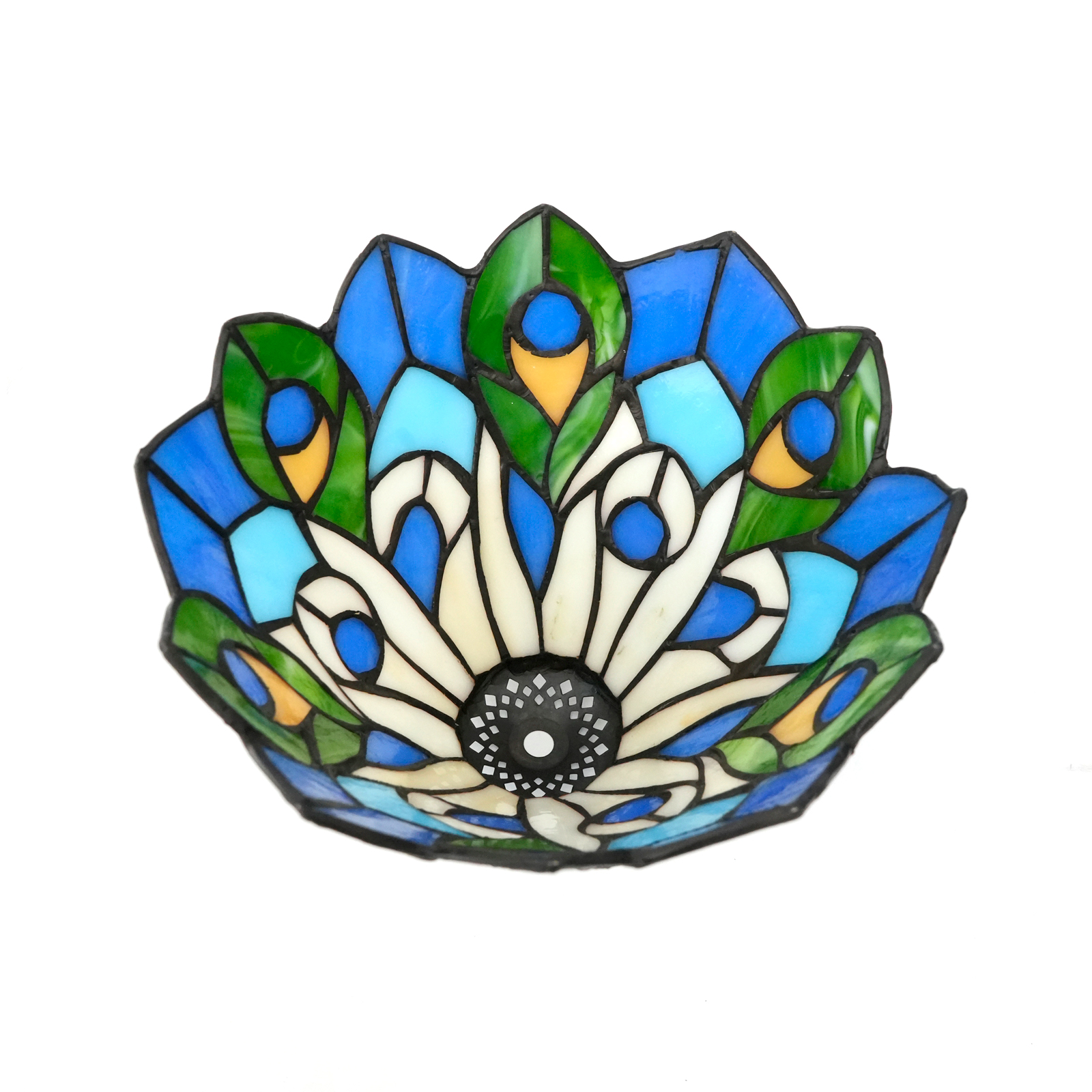 In the home world where retro and art blend, this 8-inch Tiffany colored glass lampshade, like a fairy flying from the Victorian era, infuses the space with retro romance through hand-carved polka dot peacock tail patterns.