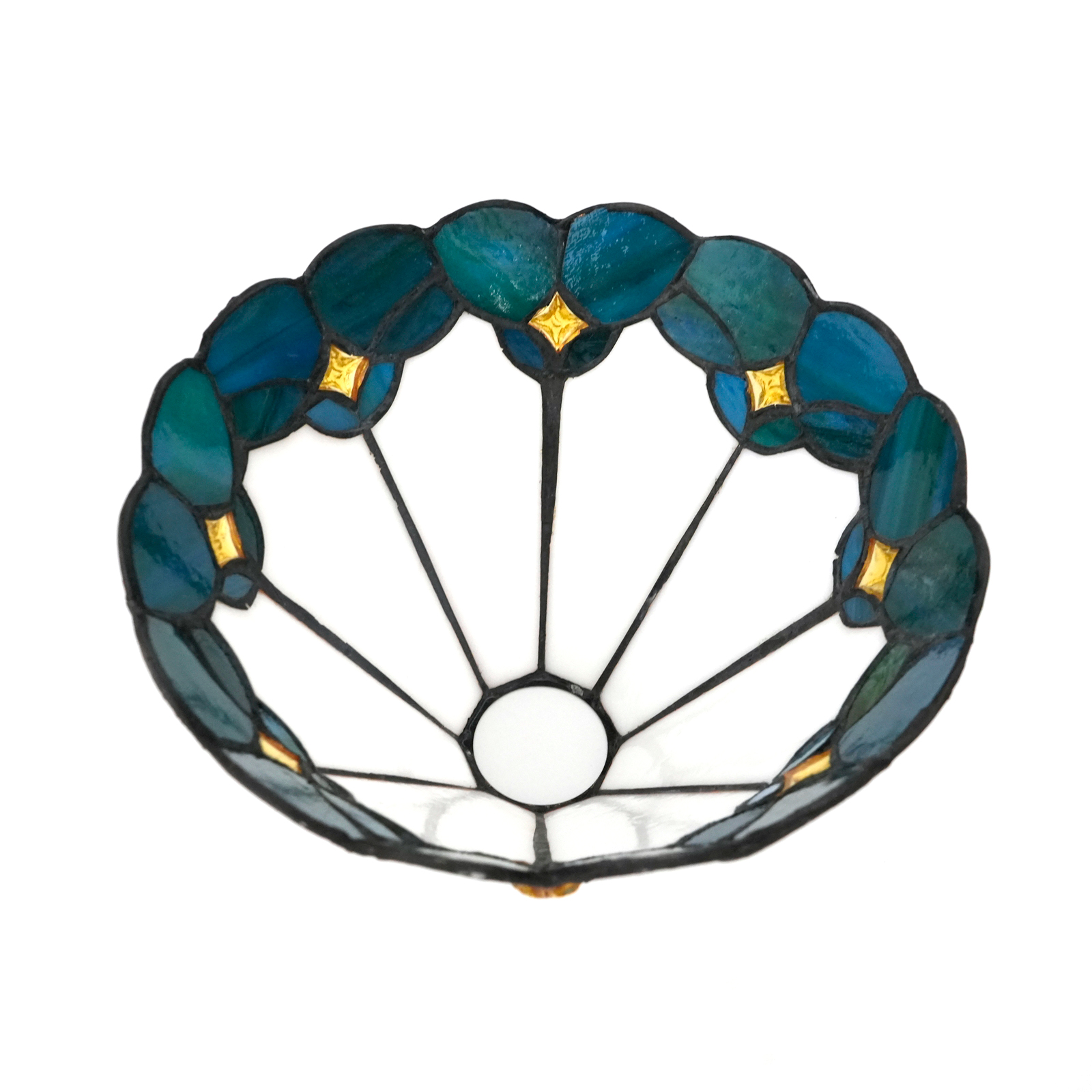 It inherits the essence of Tiffany's glass craftsmanship. Every piece of glass is carefully selected, cut and assembled by artisans. The 70F white base glass is used as the base, pure and transparent, like the first glimmer of dawn. The edge is decorated with colored glass, blending blue and green, like a flowing natural scene. Golden ornaments are dotted among them, just like stars falling, endowing the lampshade with an exquisite and luxurious texture. The handcrafted warmth gives each lampshade a unique texture, making it an artistic masterpiece that is hard to replicate with machine production, adding an exclusive charm to home decoration.