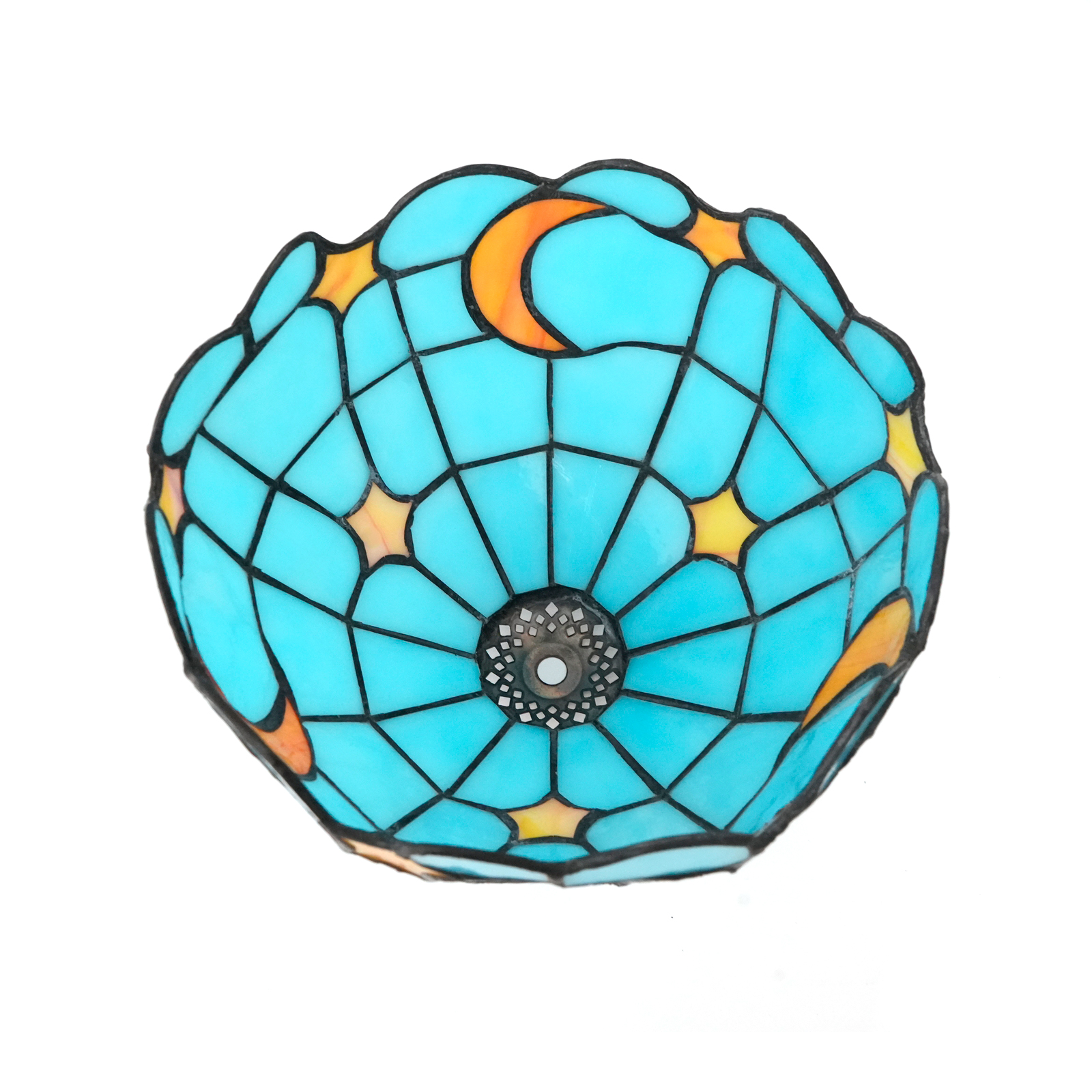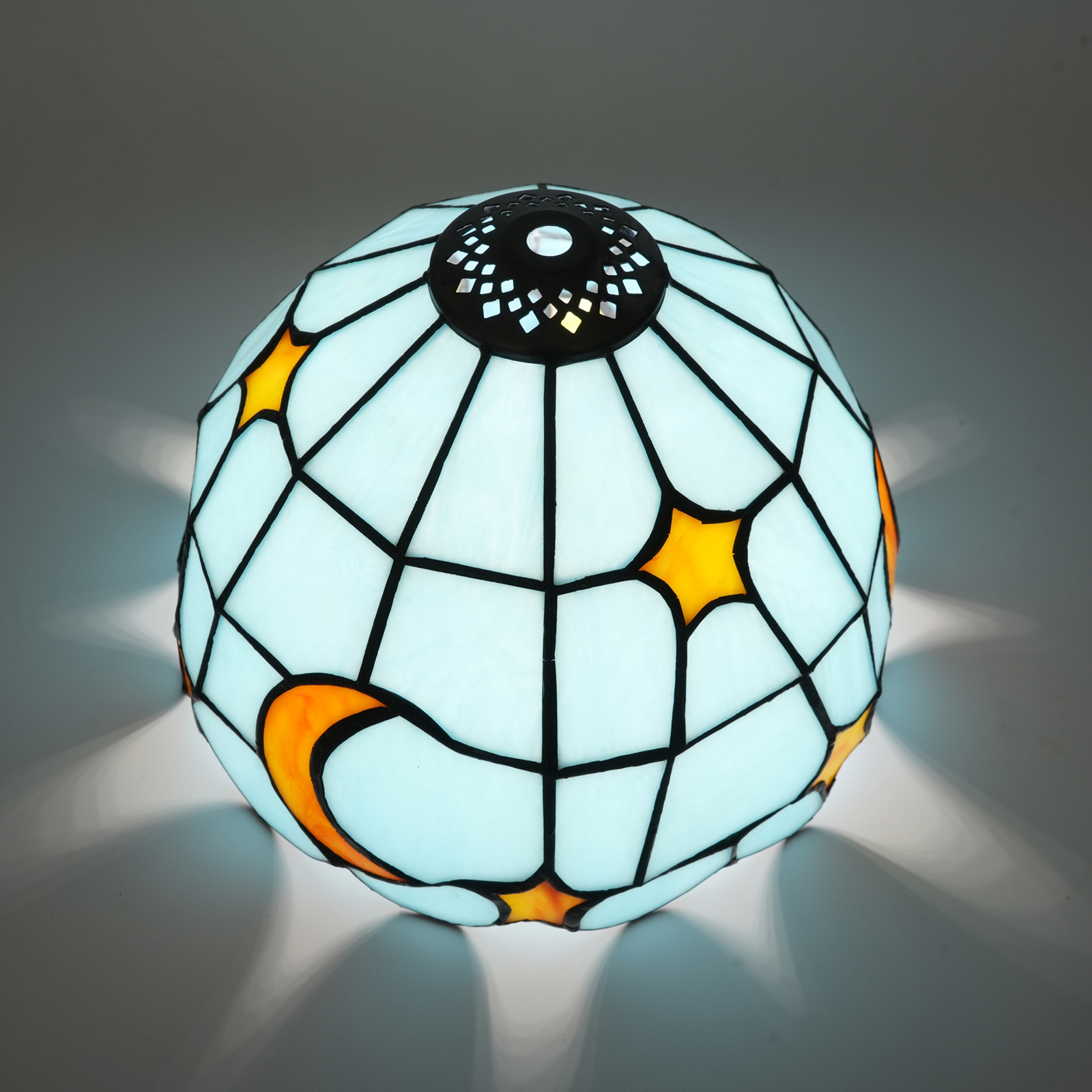 Inheriting the century-old Tiffany glass craftsmanship, each piece of glass undergoes multiple manual processes such as cutting, splicing and welding. The artisans carefully select glass with excellent light transmission and warm colors. The blue background is like a quiet night sky. Through high-temperature fusion and metal edge wrapping, the star and moon patterns are firmly established and have a strong three-dimensional effect. Each lampshade is a unique artistic masterpiece.