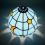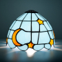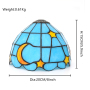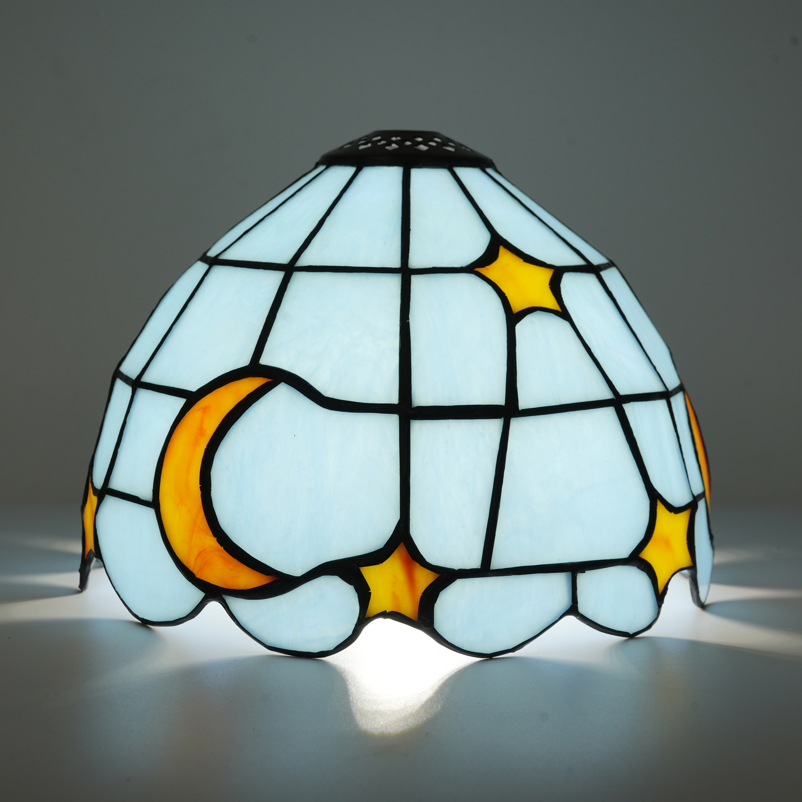 This 8-inch (20CM in diameter, 15CM in height, and 0.61Kg in weight) Tiffany colored glass lampshade is handcrafted with great care. On a blue background, the star and moon patterns are vividly depicted. With a small hole design on the top, it is suitable for various home lighting carriers such as table lamps and chandeliers, infusing an artistic atmosphere into the space.