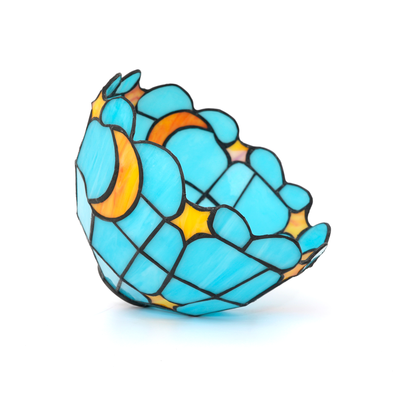 With a blue background as the backdrop and yellow stars and moon as embellishments, it replicates the romance of the vast night sky. The crescent moon curves with affection, and the stars twinkle playfully, breaking the monotony of conventional lampshades. When lit, the light and shadow pass through the colored glass, casting dreamy and mottled patterns on the walls and tables, creating a warm and poetic living atmosphere, making the home a quiet haven to escape the hustle and bustle.