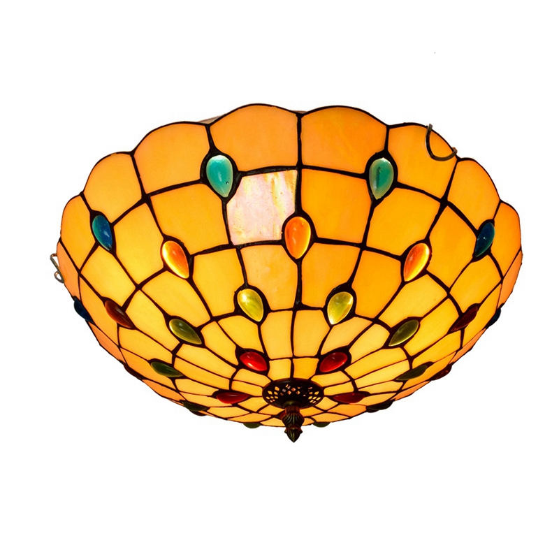Blivuself Tiffany Style Stained Glass 16 Inch Ginger Ceiling Light European And American Retro Style, Suitable For Living Room, Dining Room, Bedroom, Bar And Other Indoor Home Decoration 16 Inch Colored Beads - White Pan Ceiling Light OFC3022