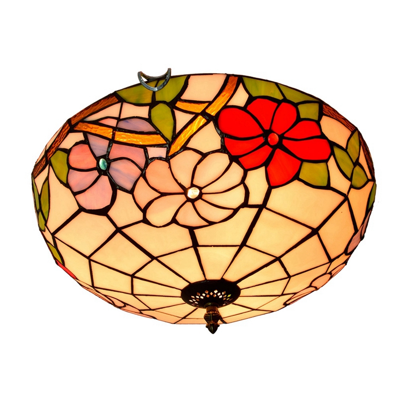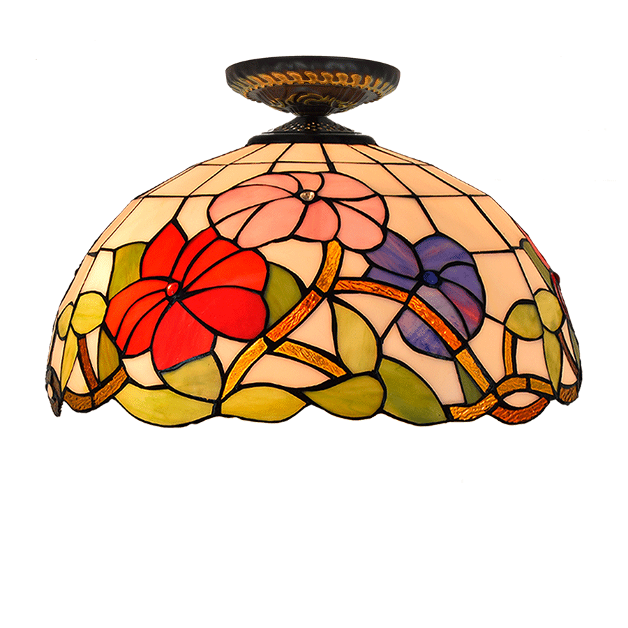 Blivuself Tiffany Style Stained Glass 16-Inch Pink Purple Red Three-Color Flower Ceiling Light European And American Retro Style, Suitable For Living Room, Dining Room, Bedroom, Bar And Other Indoor Home Decoration 16-Inch Morning Glory Flat Mouth - White Ceiling Light - Three-Color Flower OFC3008