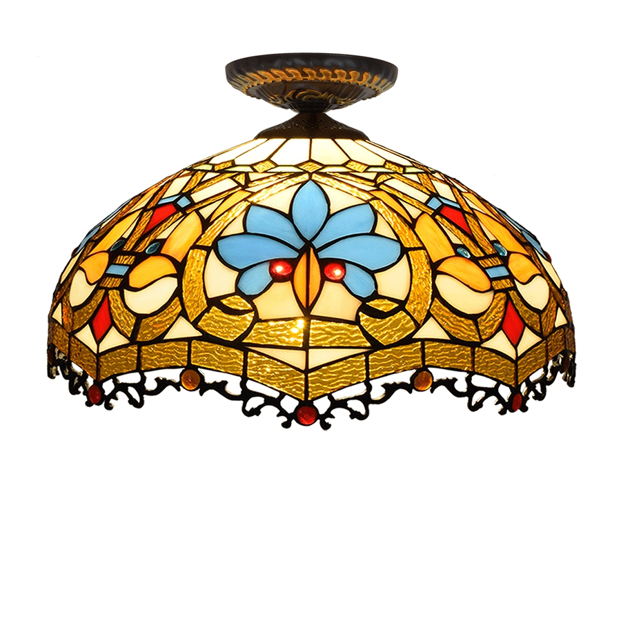 Blivuself Tiffany Style Stained Glass 16 Inch Beige Downward Ceiling Light European And American Retro Style, Suitable For Living Room, Dining Room, Bedroom, Bar And Other Indoor Home Decoration 16 inch Clementos-Small Mouth Downward Ceiling Light OFC2038