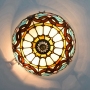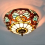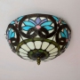 Blivuself Tiffany Style Stained Glass 12-Inch Blue Ceiling Light European And American Retro Style, Suitable For Living Room, Dining Room, Bedroom, Bar And Other Indoor Home Decoration 12-Inch Blue Love Flat Mouth - White Plate Ceiling Light OFC3009