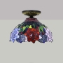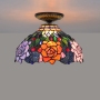 Blivuself Tiffany Style Stained Glass 12-Inch Deep Purple Red Rose Downward Ceiling Light European And American Retro Style, Suitable For Living Room, Dining Room, Bedroom, Bar And Other Indoor Home Decoration 12-Inch Black Rose-Small Mouth Downward Ceiling Light OFC2007