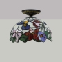 Blivuself Tiffany Style Stained Glass 12-Inch Red Downward Ceiling Light European And American Retro Style, Suitable For Living Room, Dining Room, Bedroom, Bar And Other Indoor Home Decoration 12-Inch Bird - Small Mouth Downward Ceiling Light - Hummingbird OFC2015