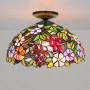 Blivuself Tiffany Style Stained Glass 16 Inch Deep Purple Downward Ceiling Light European And American Retro Style, Suitable For Living Room, Dining Room, Bedroom, Bar And Other Indoor Home Decoration 16 Grape Flower - Small Mouth Downward Ceiling Light OFC2032