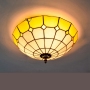 Blivuself Tiffany style Stained glass 16-inch yellow lattice ceiling light European and American retro style, suitable for living room, dining room, bedroom, bar and other indoor home decoration 16-inch yellow and white lattice - white ceiling light OFC3018