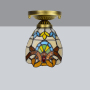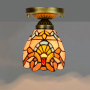 Blivuself Tiffany Style Stained Glass 6-Inch Warm Yellow Ceiling Light European And American Retro Style, Suitable For Living Room, Dining Room, Bedroom, Bar And Other Indoor Home Decoration 6-Inch Baroque Big Mouth - Small Ceiling Light OFC1019