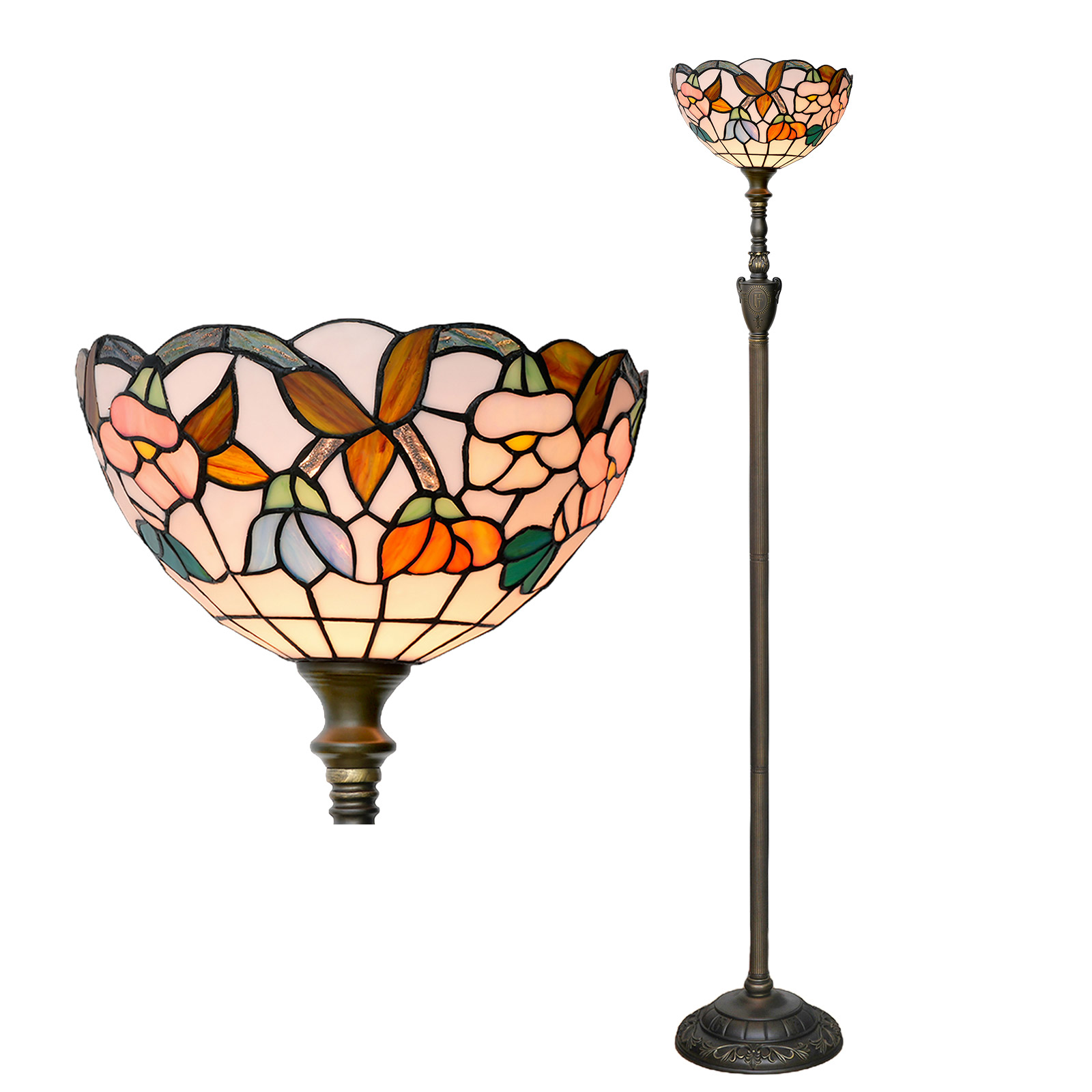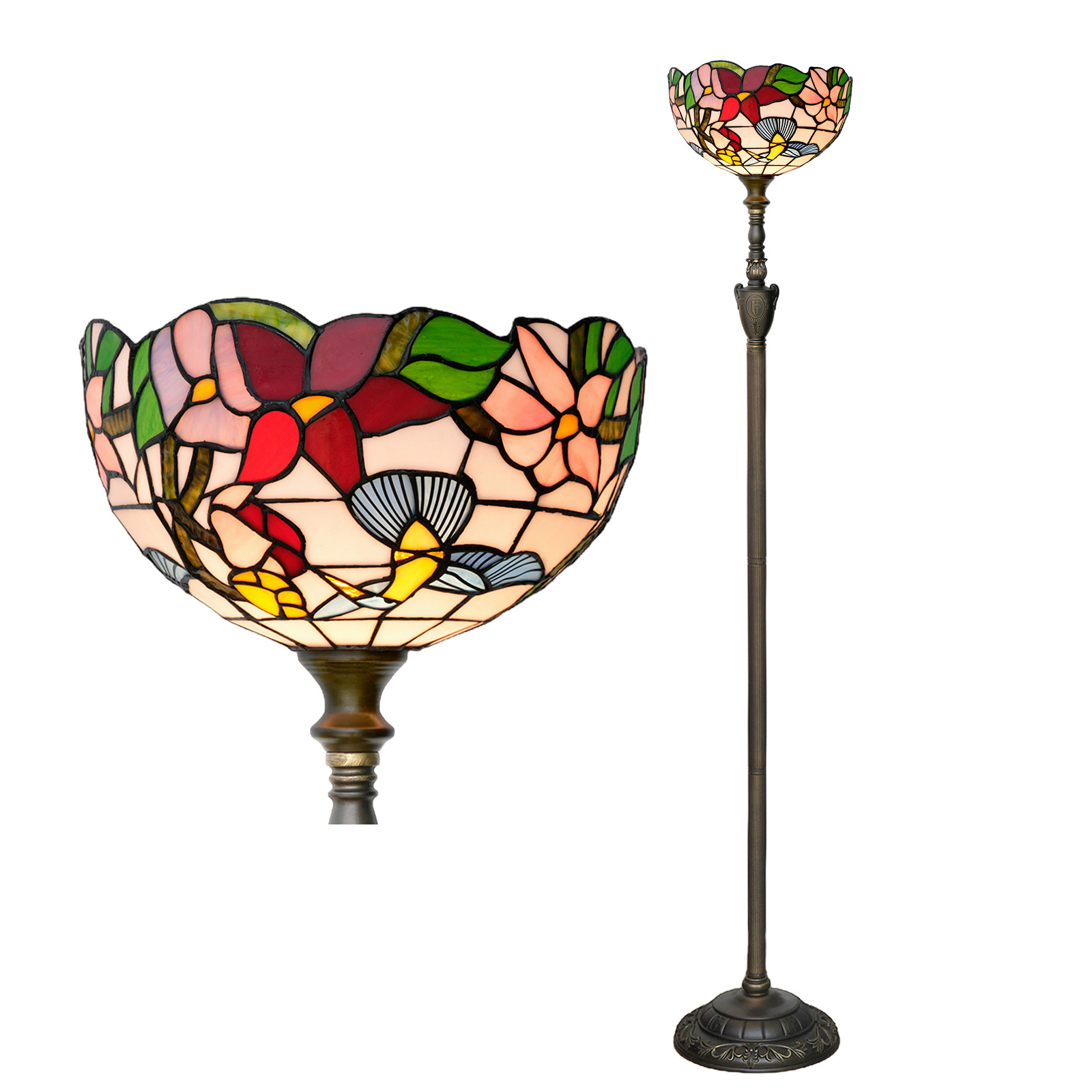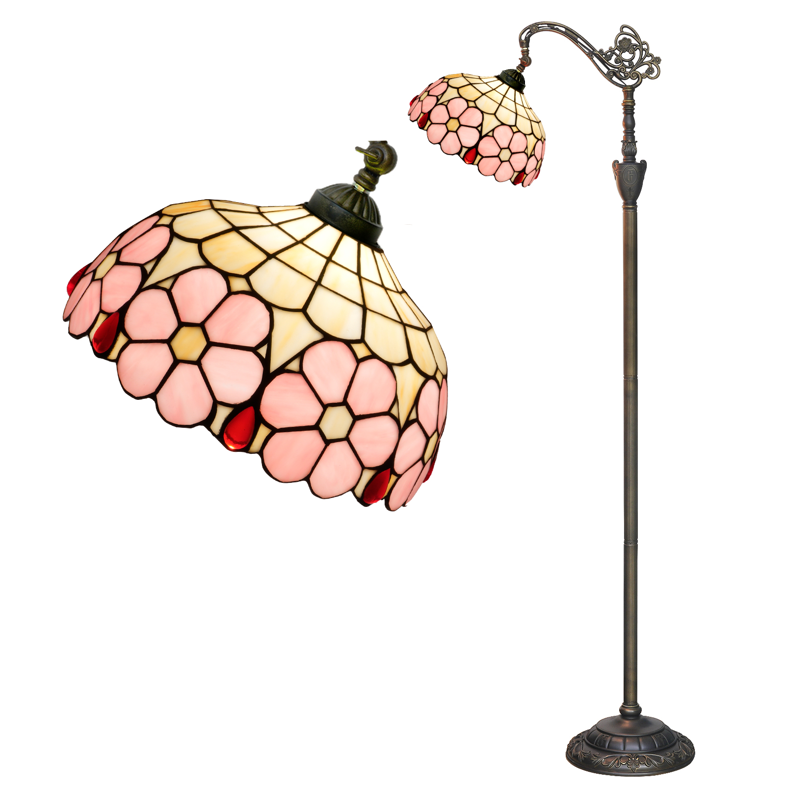 Blivuself Tiffany Floor Lamp Pink Flowers 12 Inches Handmade Cherry Blossom Stained Glass Lamp Tiffany Retro Style Floor Lamp Suitable For Bedroom Dining Room Living Room Study Office And Other Classical Art Home Decoration Crafts OFX024