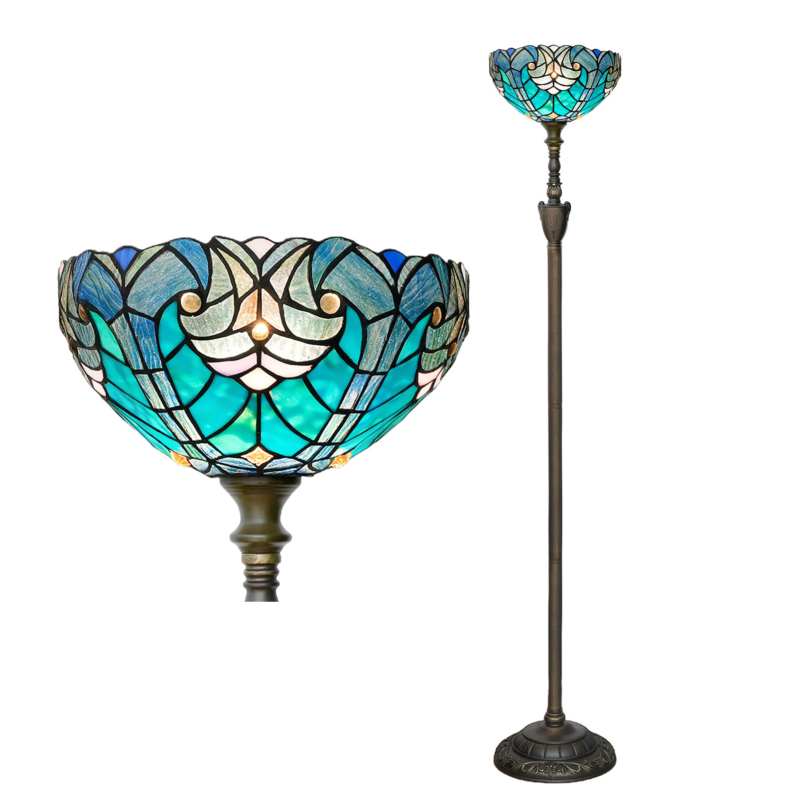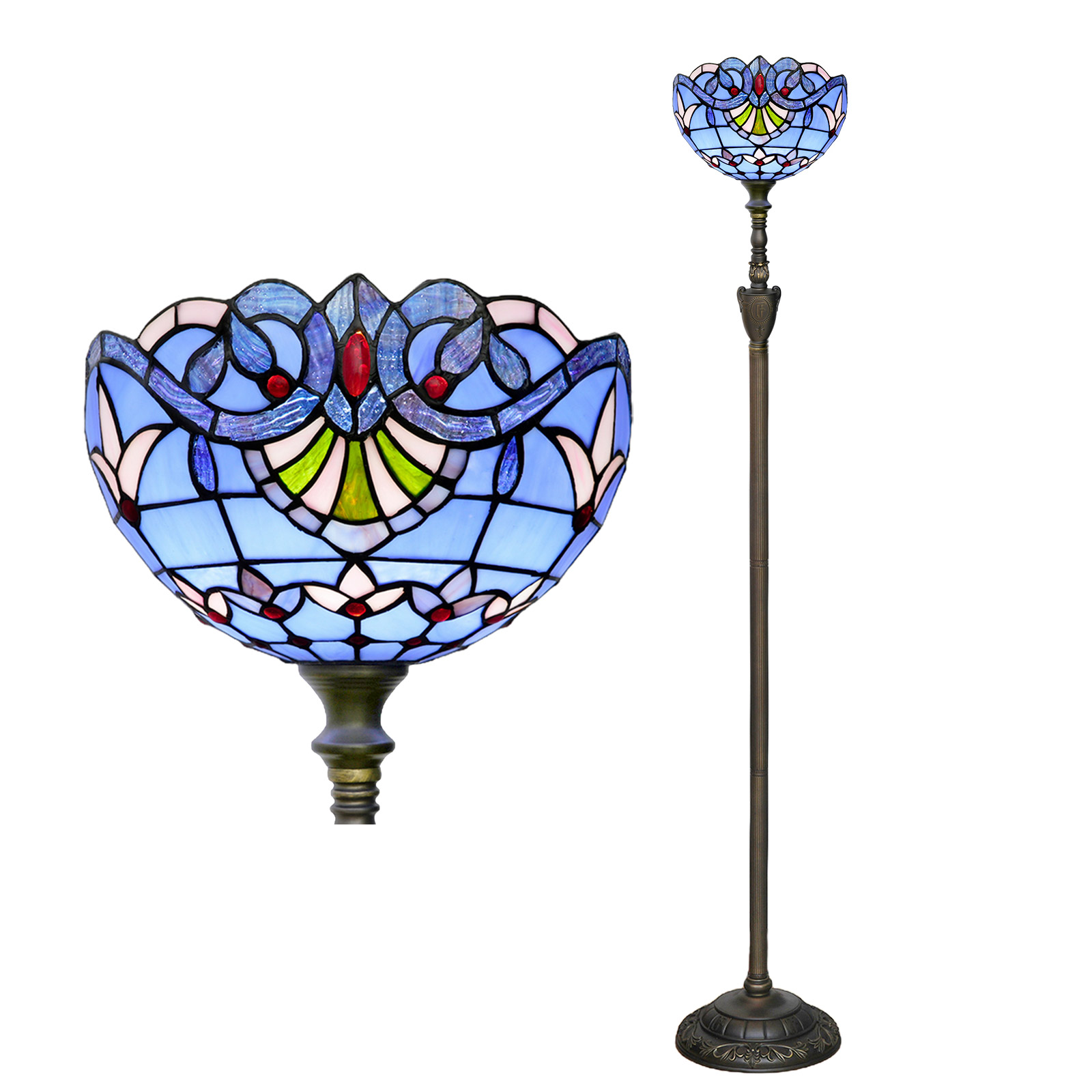 Blivuself Tiffany Floor Lamp Navia Style 12 Inch Lavender Purple Blue Baroque Hand-Made Stained Glass Lamp Shade, Vertical Pole Type Upward Floor Lamp, Interior Lighting Medieval Retro Style Home Decoration For Bedroom Living Room Office Study, 12 Inch Blue Baroque -Of Upward Floor Lamp OFXS010