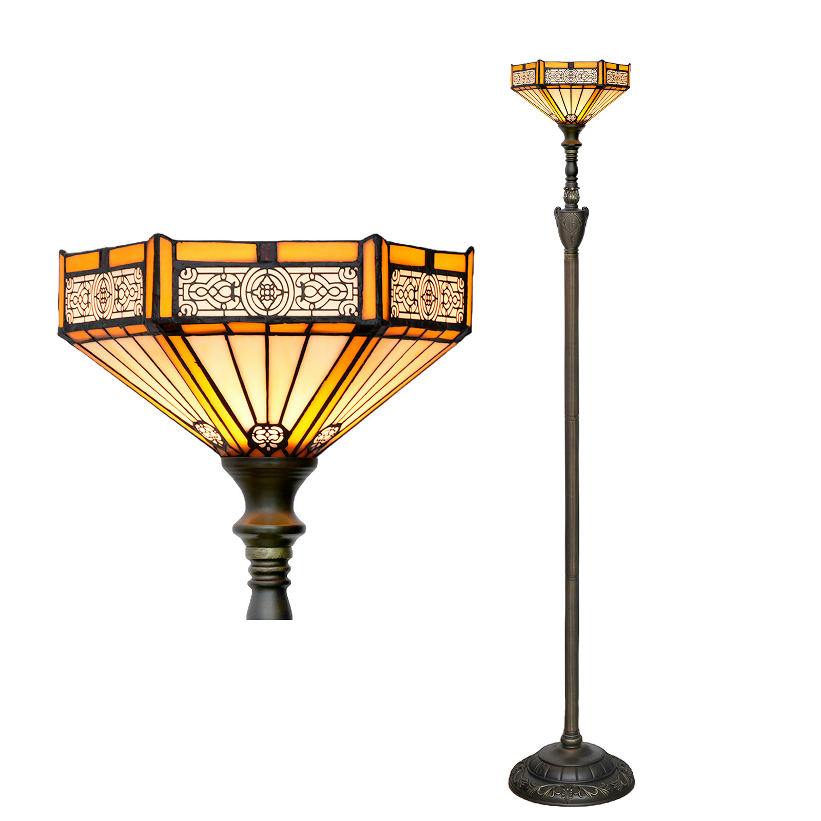 Blivuself Tiffany Floor Lamp Navia-Style 10-Inch Chinese Traditional Copper Net Hexagon Hand-Made Stained Glass Lamp Shade, Vertical Pole Type Upward Floor Lamp, Interior Lighting Medieval Retro Style Home Decoration Suitable For Bedroom Living Room Office Study, 10-Inch Chinese Hexagon-OF Upward Floor Lamp OFXS011