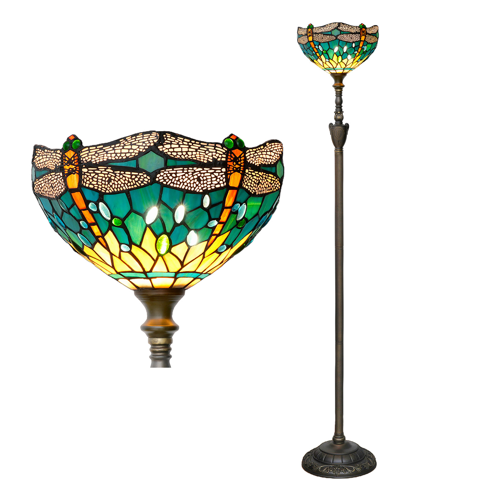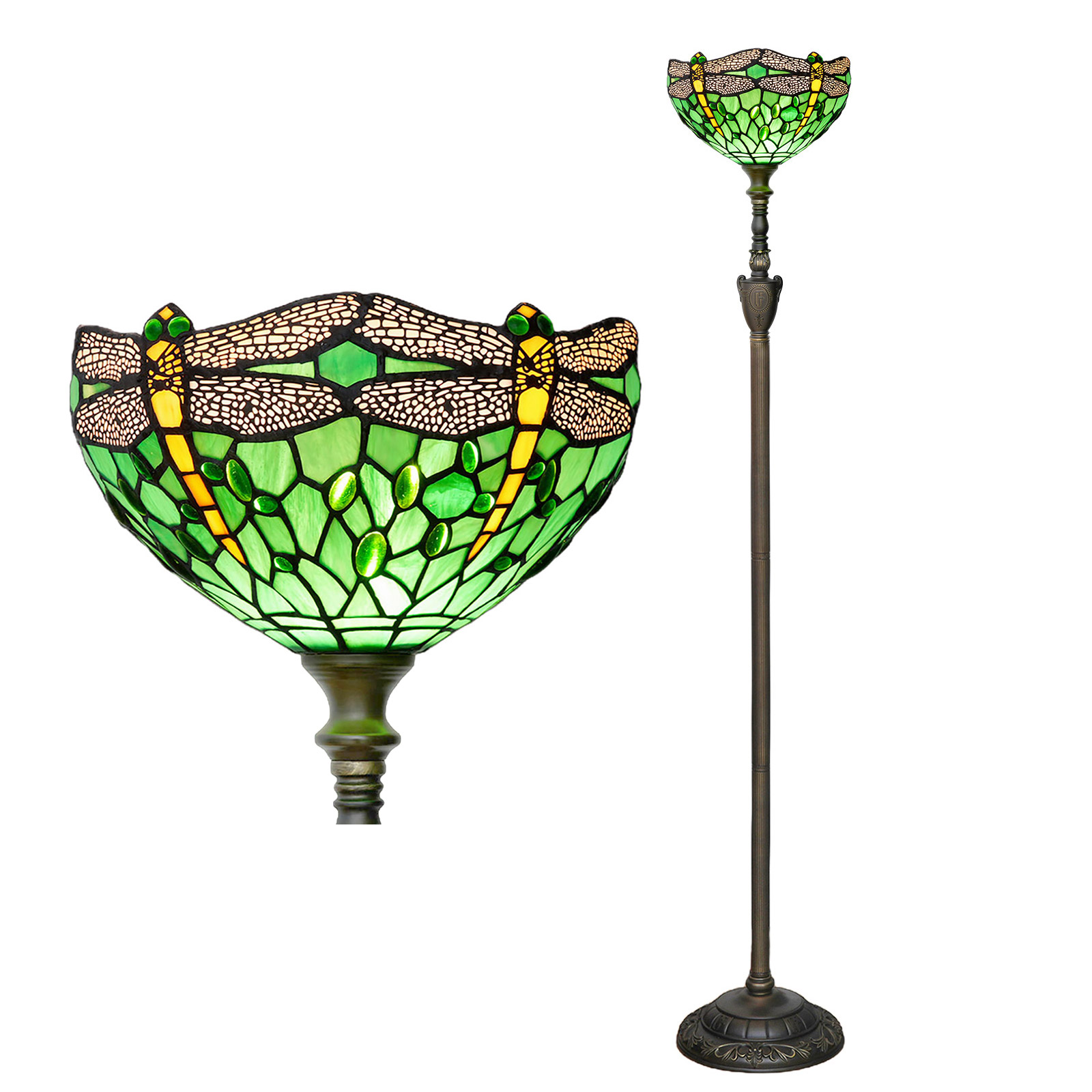 Blivuself Tiffany Floor Lamp Victorian Style 12 Inch Green Dragonfly Handmade Stained Glass Lampshade, Vertical Pole Type Upward Floor Lamp, Indoor Lighting Dragonfly Retro Home Decoration Suitable For Bedroom Living Room Office Study, 12 Inch Green Dragonfly -Of Upward Floor Lamp OFXS013